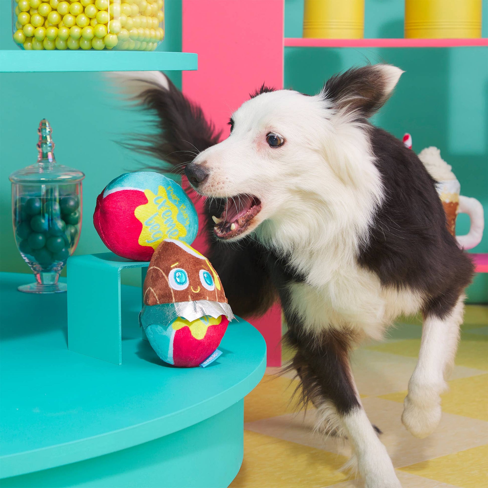These chocolate egg dog toys are no yolk! Cadfurry Eggs are made with crazy crinkle, 2 squeakers, and a chewy center packed with fluff. This dynamic duo comes with a wrapped and an unwrapped egg making it perfect for multi-dog homes or particularly playful pups.