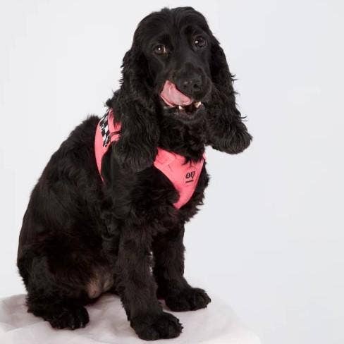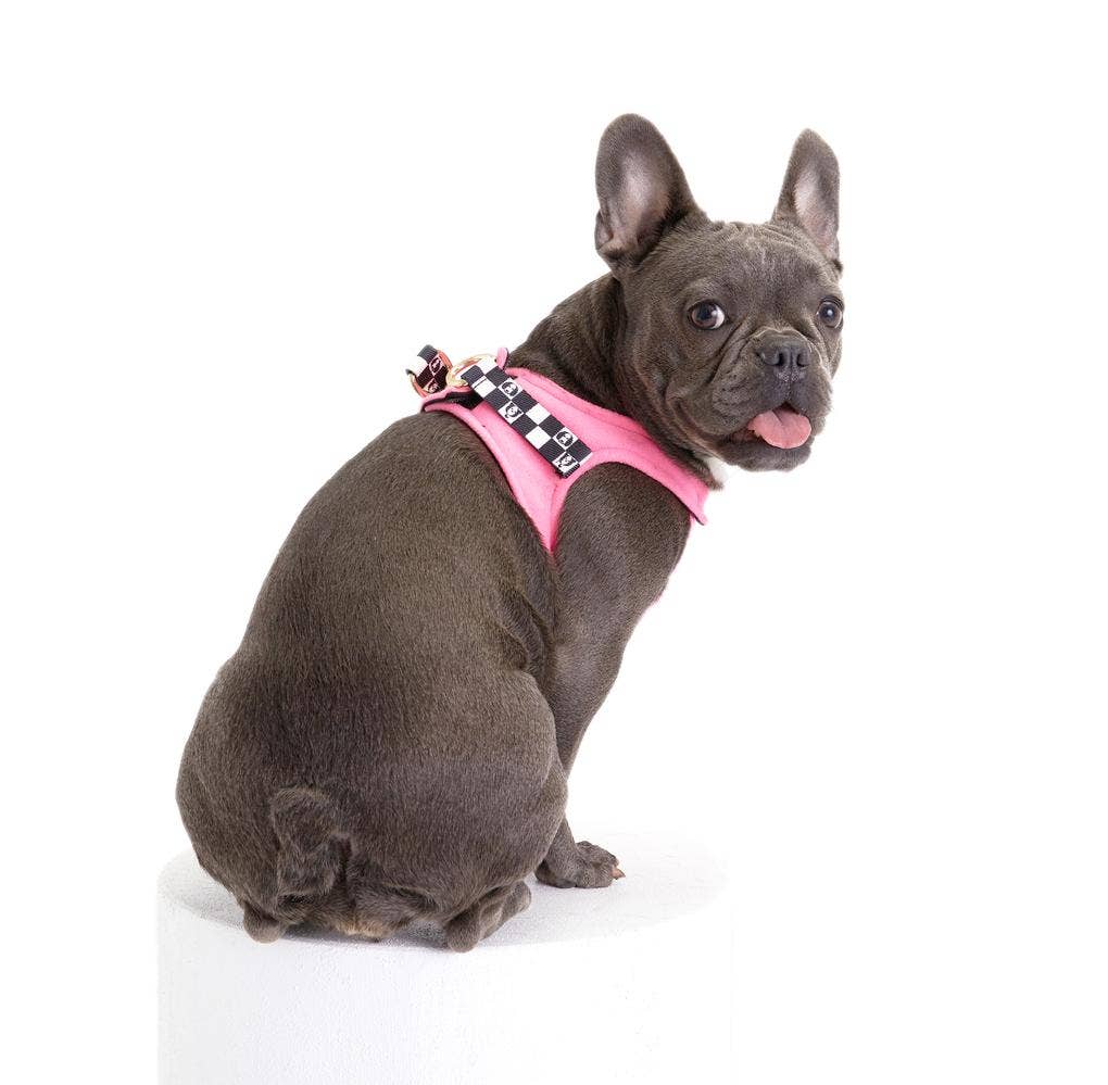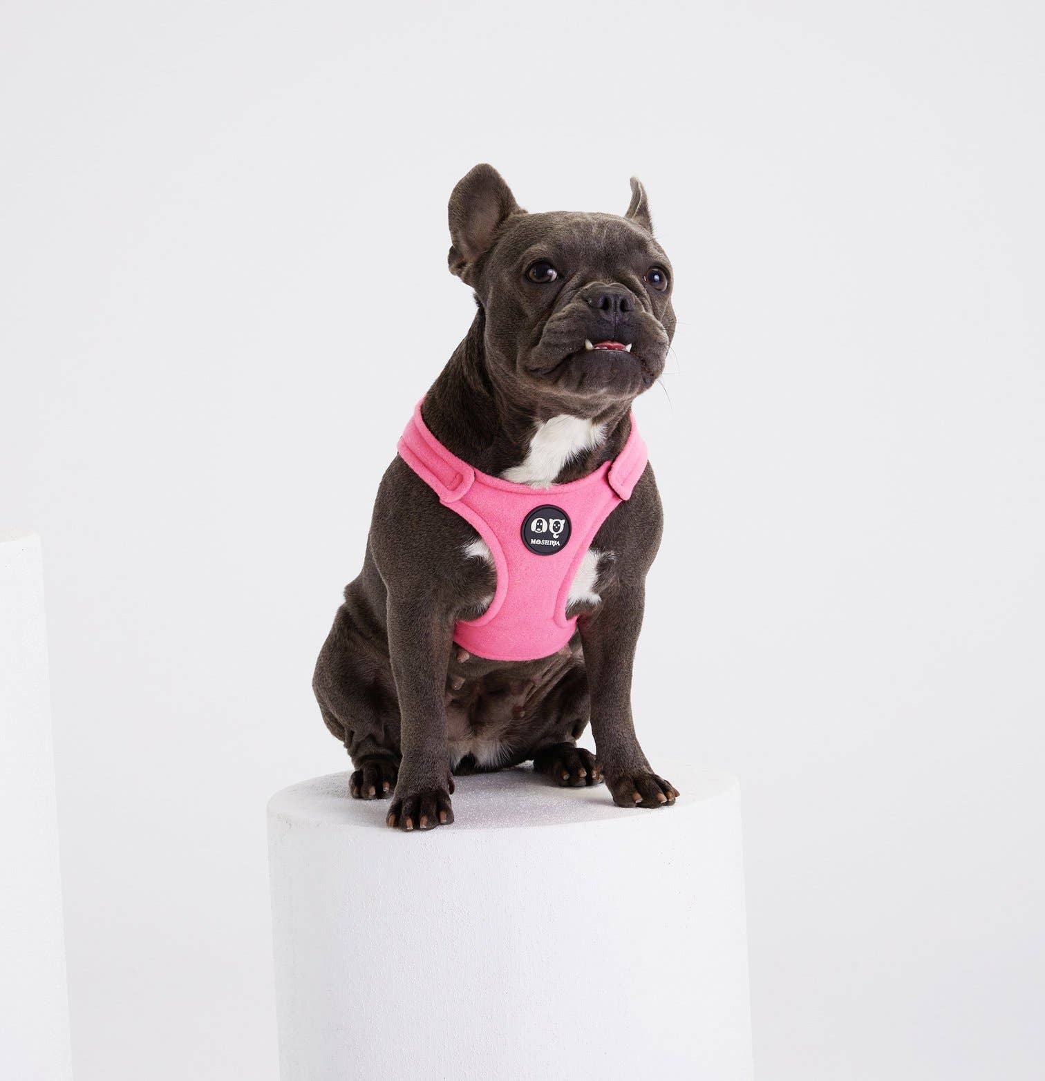Arnés de lana Bonbon con superficie exterior rosa y forro negro. ¡Un moderno look de dos tonos que hará que las colas se muevan y que los bebés peludos estén atados a la moda!
