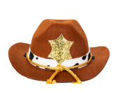 Disfraz de perro con sombrero de vaquero y estrella marrón
