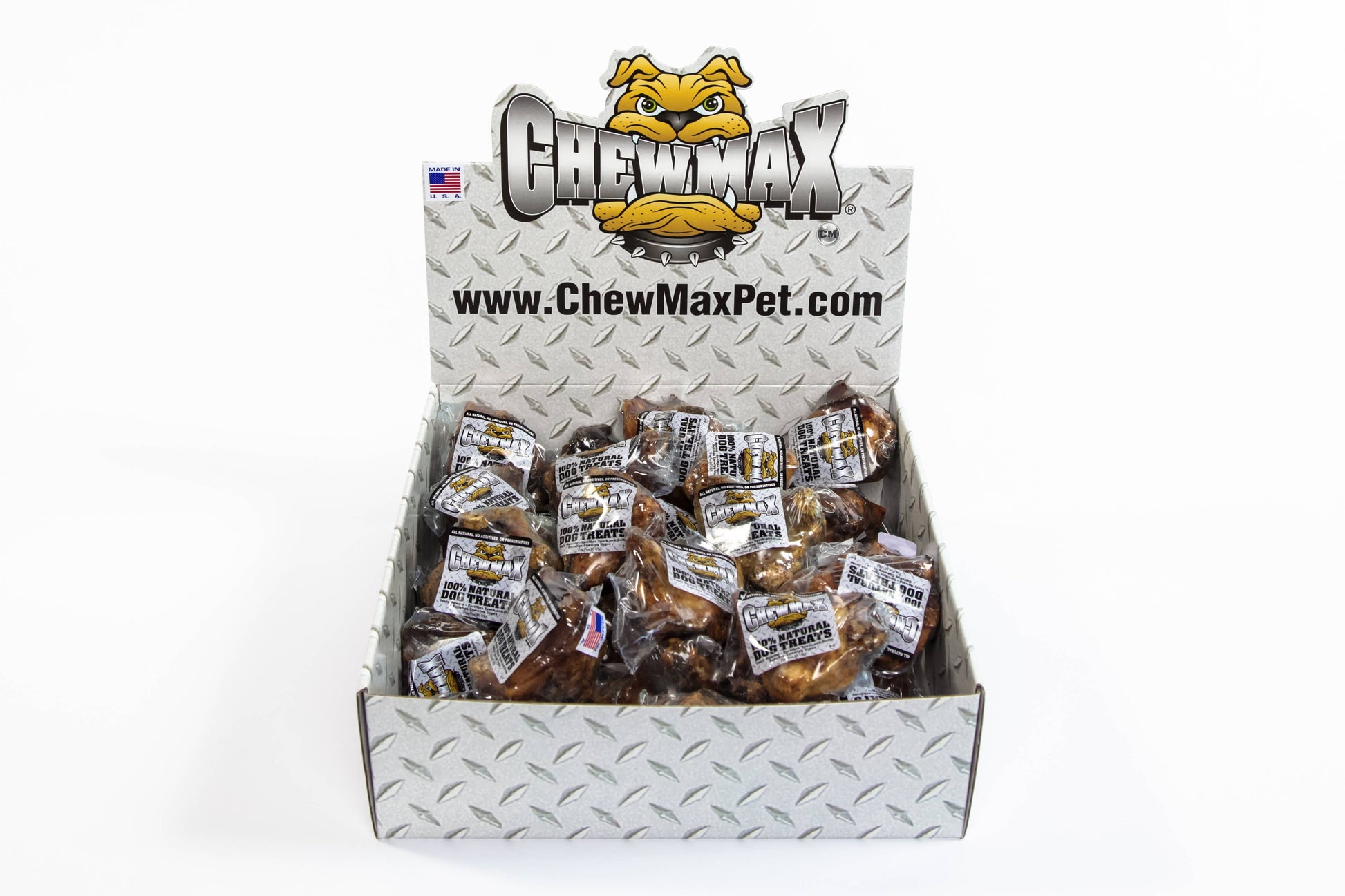 Las rótulas de res ChewMax se tuestan lentamente para esterilizarlas y conservar los sabores del jugo que tanto le gustan a tu cachorro. Cada rótula tiene aproximadamente 4 pulgadas de diámetro y forma esférica. Esta forma esférica hace que a los masticadores extremos les resulte difícil morderlas con fuerza y destruir el hueso de un solo mordisco. Además, la forma es perfecta para maximizar la eliminación de sarro y placa característica de la mayoría de los huesos naturales.