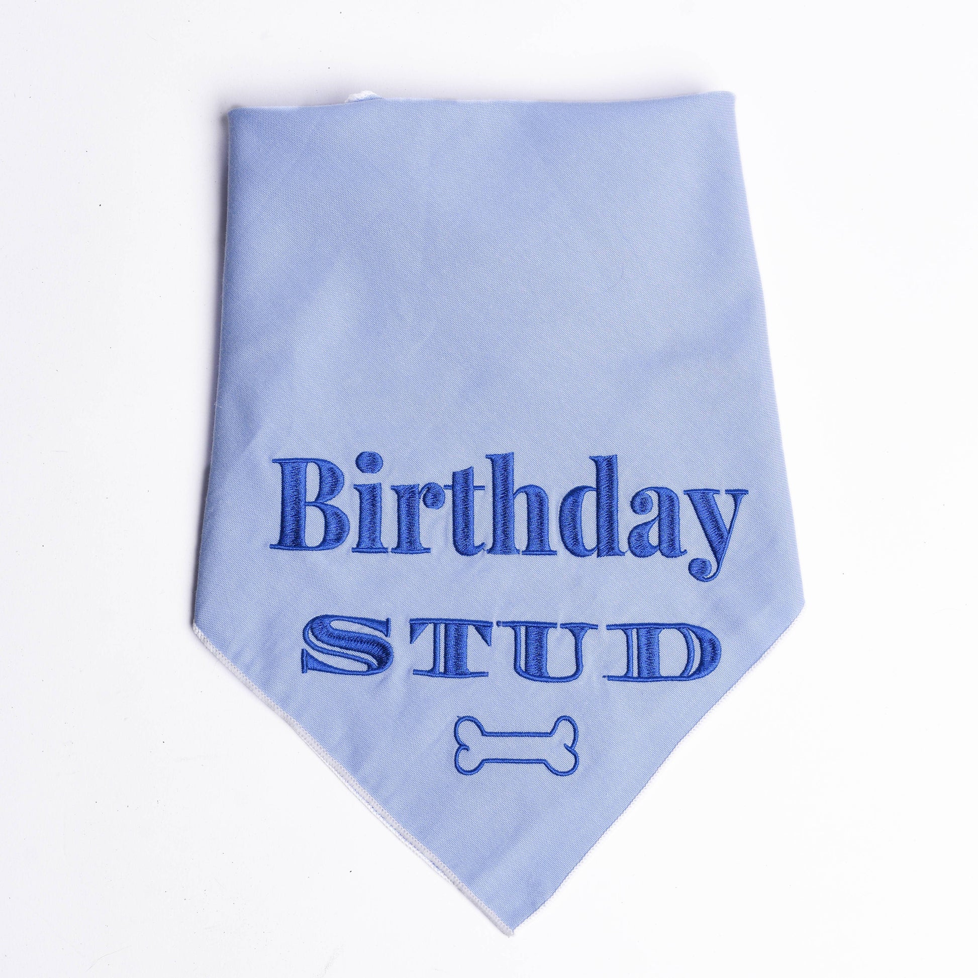 Calling all BIRTHDAY STUDS! We need to celebrate your big day!!! This soft cotton blue bandana is a crowd pleaser. The beautiful embroidery is pure perfection! Care: Machine wash cold delicate cycle. Air dry flat or machine dry on low.