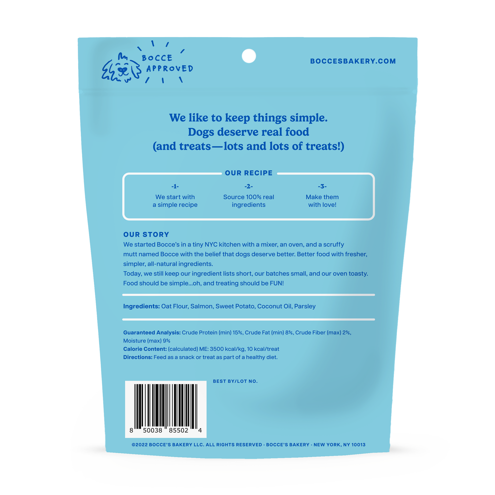 Ingredientes: Harina de avena, salmón, batata, perejil.