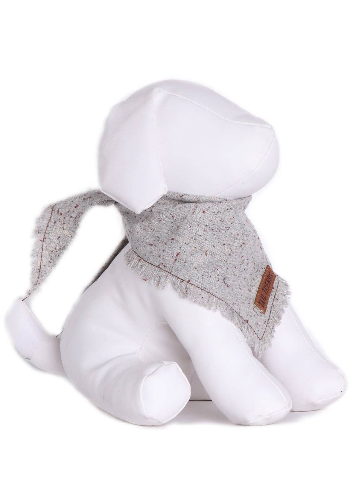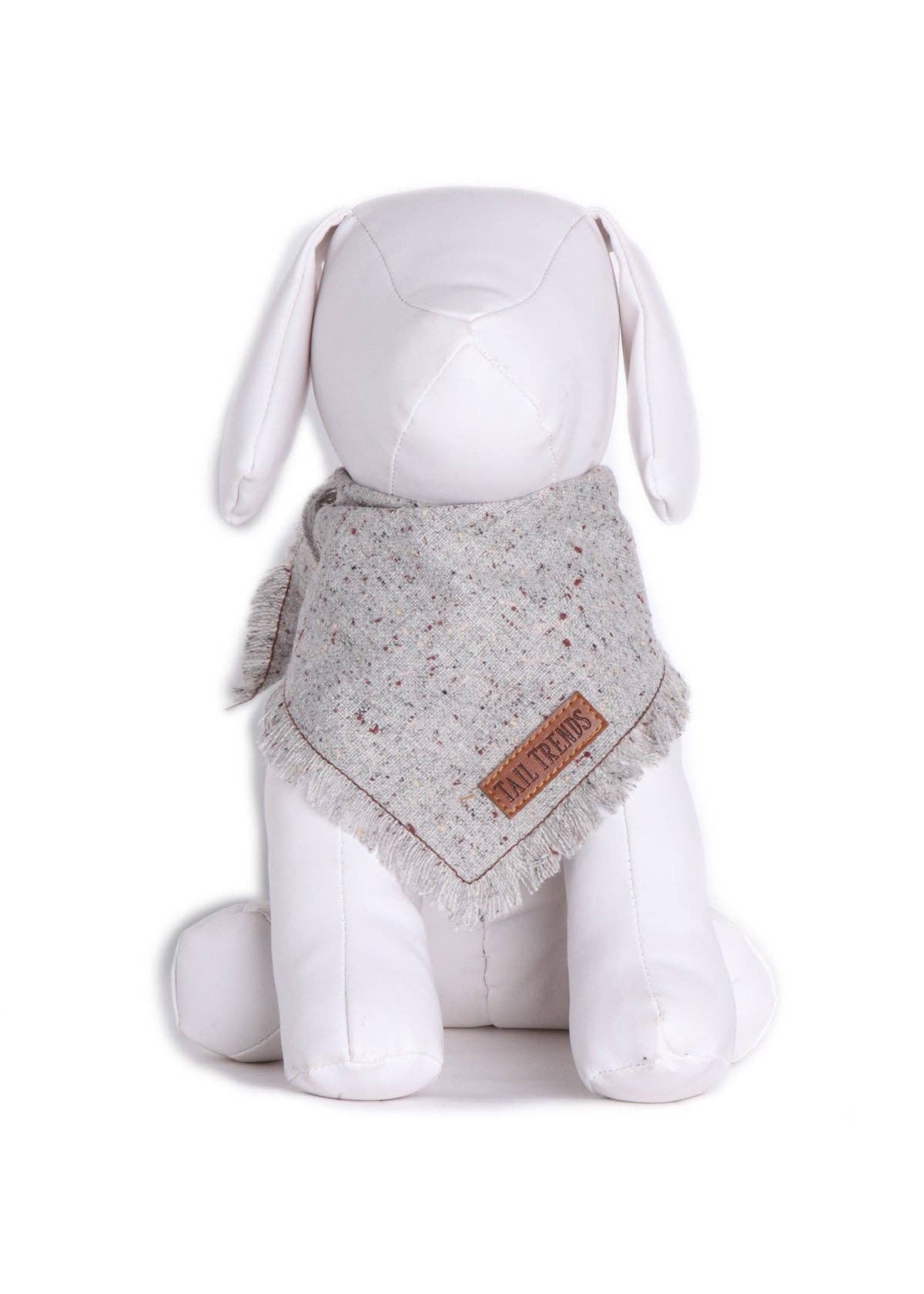 For the jet-setters on the go, our frayed bandana is your go to for staying cozy, chic, and comfortable! The cotton bandana features a scoop neck for easy wear, and a stylish leather patch sits on an angle for a timelessly cool look. Bottom side of the bandana is frayed all across and secured. X-Small fits 6-10", medium fits 10-15"