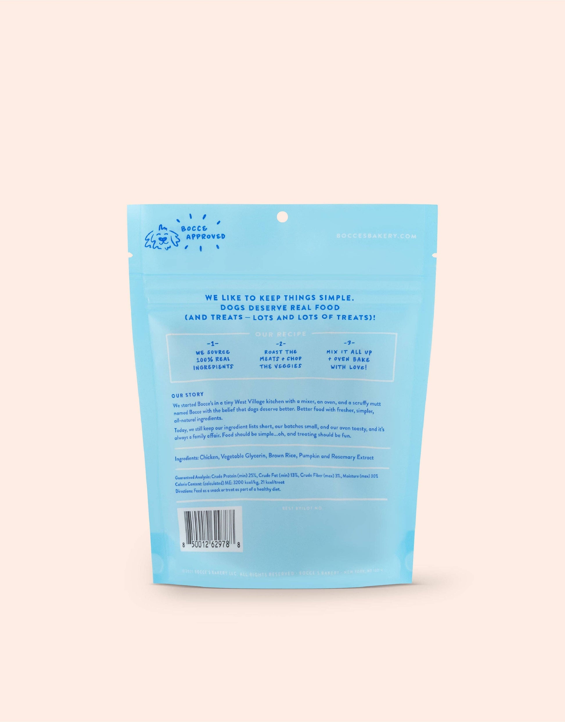 Palitos de cecina totalmente naturales horneados con pollo de EE. UU. (¡nuestro primer ingrediente!) y reforzados con calabaza fácil de digerir (sin sal ni azúcar agregada, por supuesto) en una textura masticable que hará que tu cachorro quiera más. ¿Mencionamos que tienen un 25 % de proteínas?