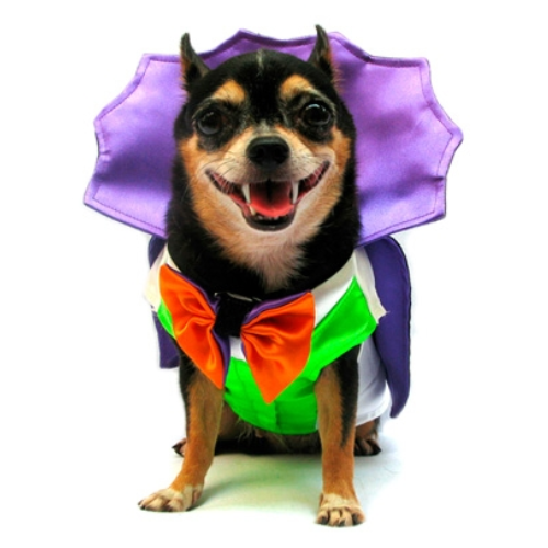 Este disfraz clásico es la combinación perfecta de satén de alta calidad y colores festivos de Halloween que crean el disfraz de vampiro perfecto. Tiene un cuerpo completamente blanco, un chaleco verde, una capa negra y un cuello levantado morado. La clásica pajarita reversible agrega un toque de clase; puedes elegir entre morado o naranja. Nuestro exclusivo panel de cierre de velcro ajustable en el pecho y el vientre hace que sea fácil de ajustar de forma segura y un ajuste muy cómodo para tu pequeño cachorro vampiro. 75 % poliéster, 25 % algodón.