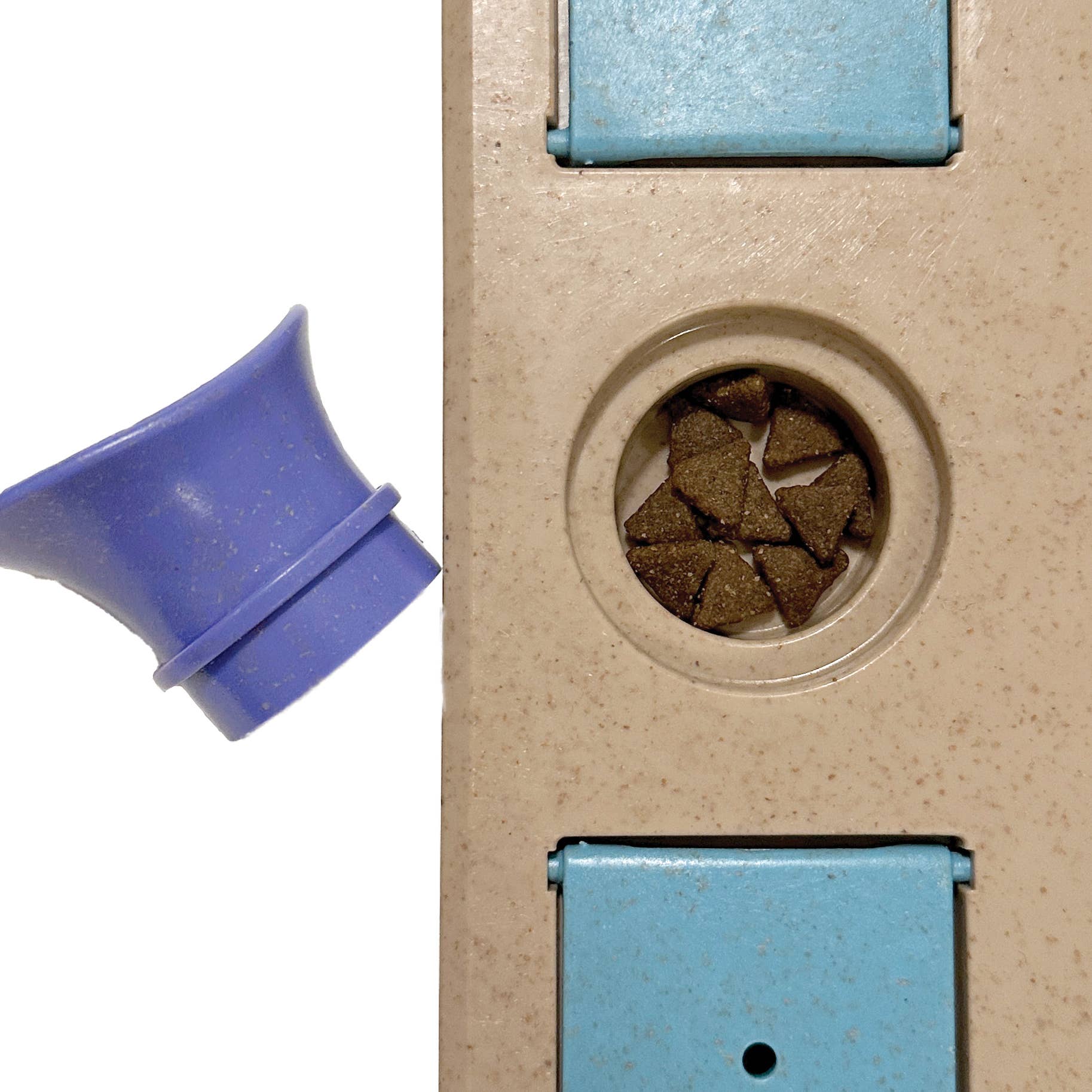 Our newest nosework puzzle toys are a fun way to stimulate your dog's senses! With different knobs, flaps and dials, there are various obstacles to solve in order to find or dispense the treats. Each toy can be simplified for beginners or made more difficult for advanced nosework play. Made of a hybrid of natural and plastic materials, this toy is stronger than just plastic alone. Enrichment toys help stimulate your dog's senses and helps curb destructive behavior by keeping them busy and their mind sharp. Dimensions (LxWxH - inches): 9.8 x 7.9 x 2.2"