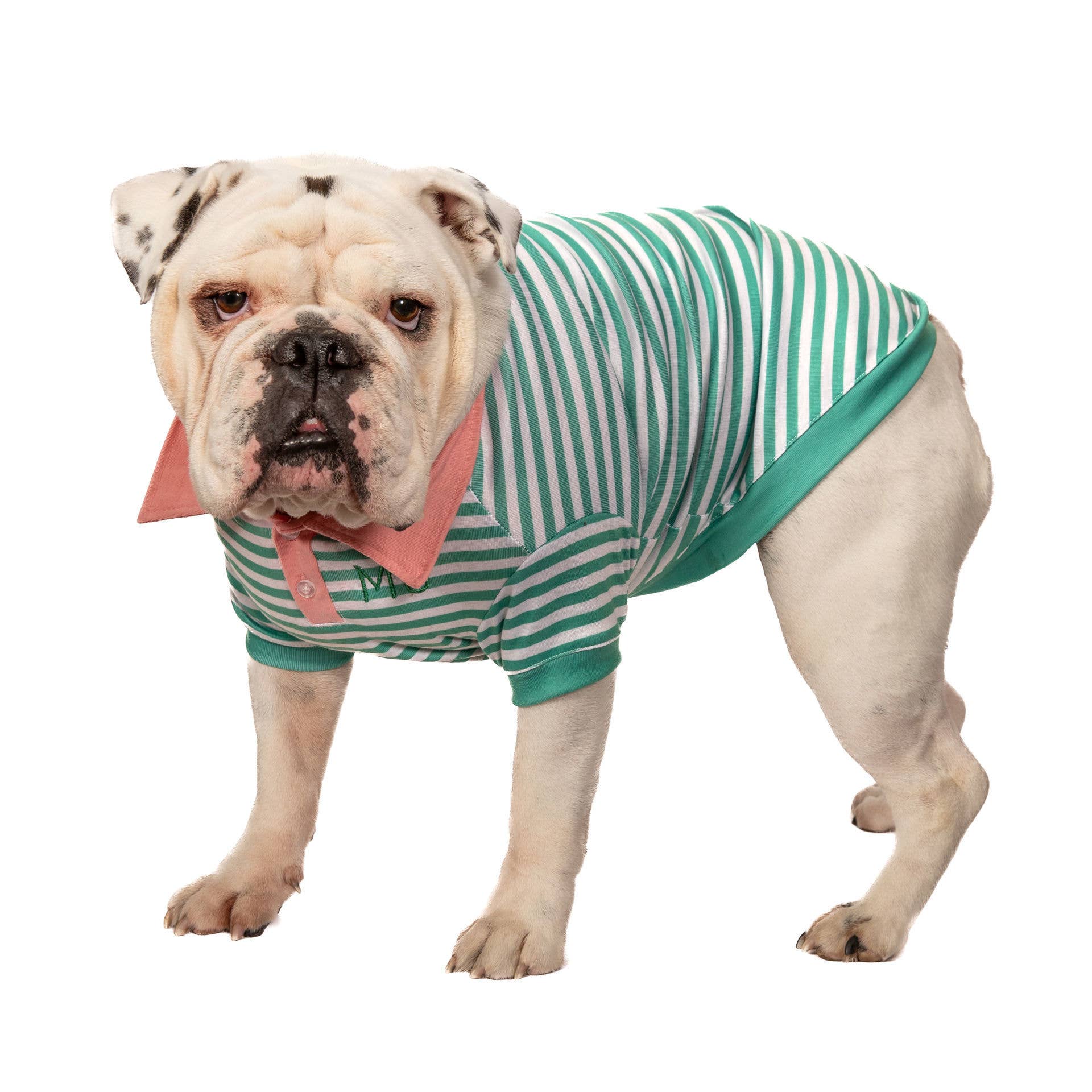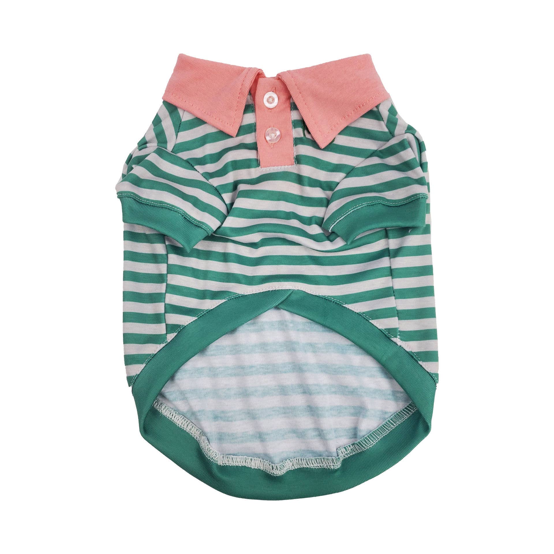 Green Stripe Polo with Pink Collar