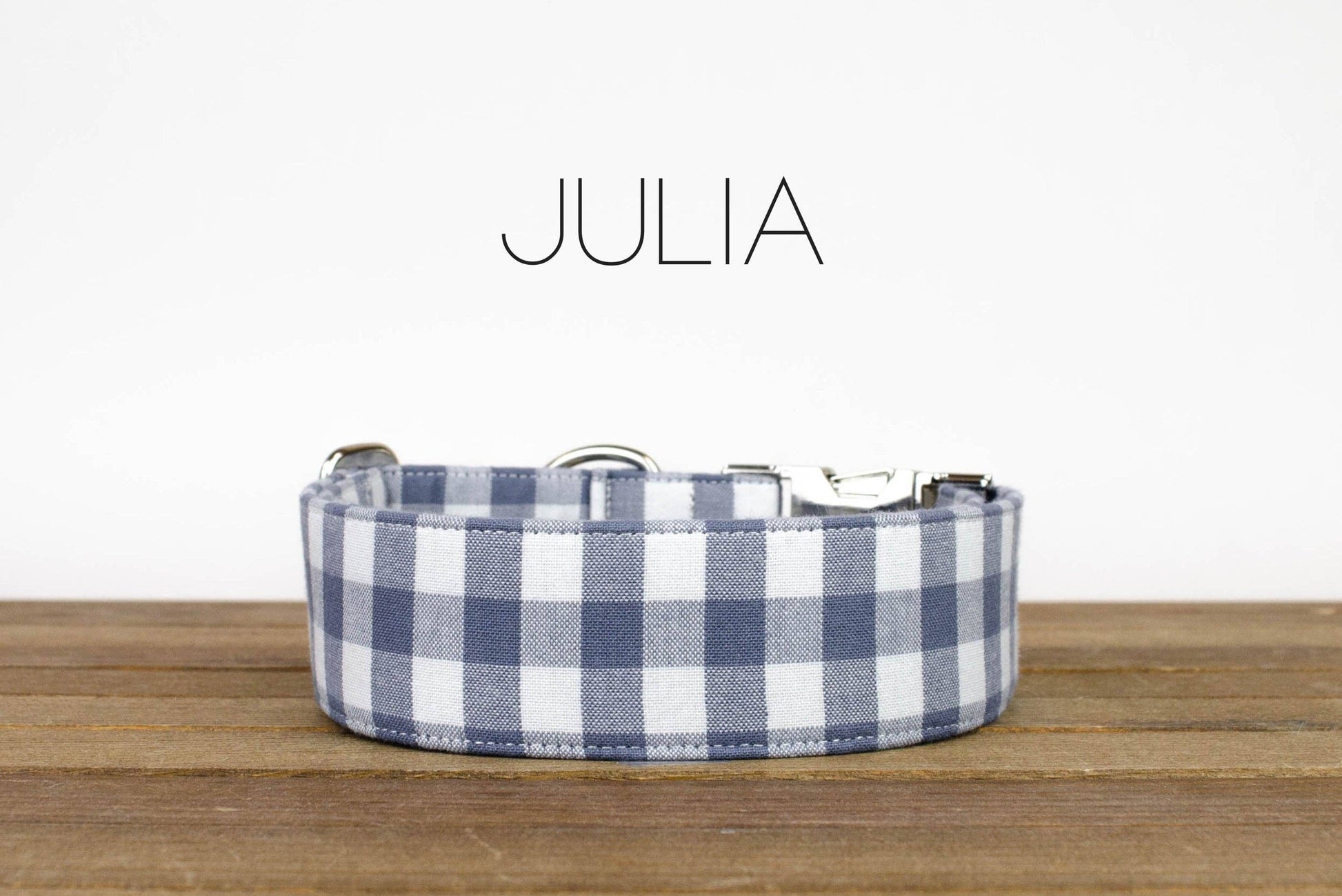 Classic blue gingham collar in a French blue tone with stainless buckle.