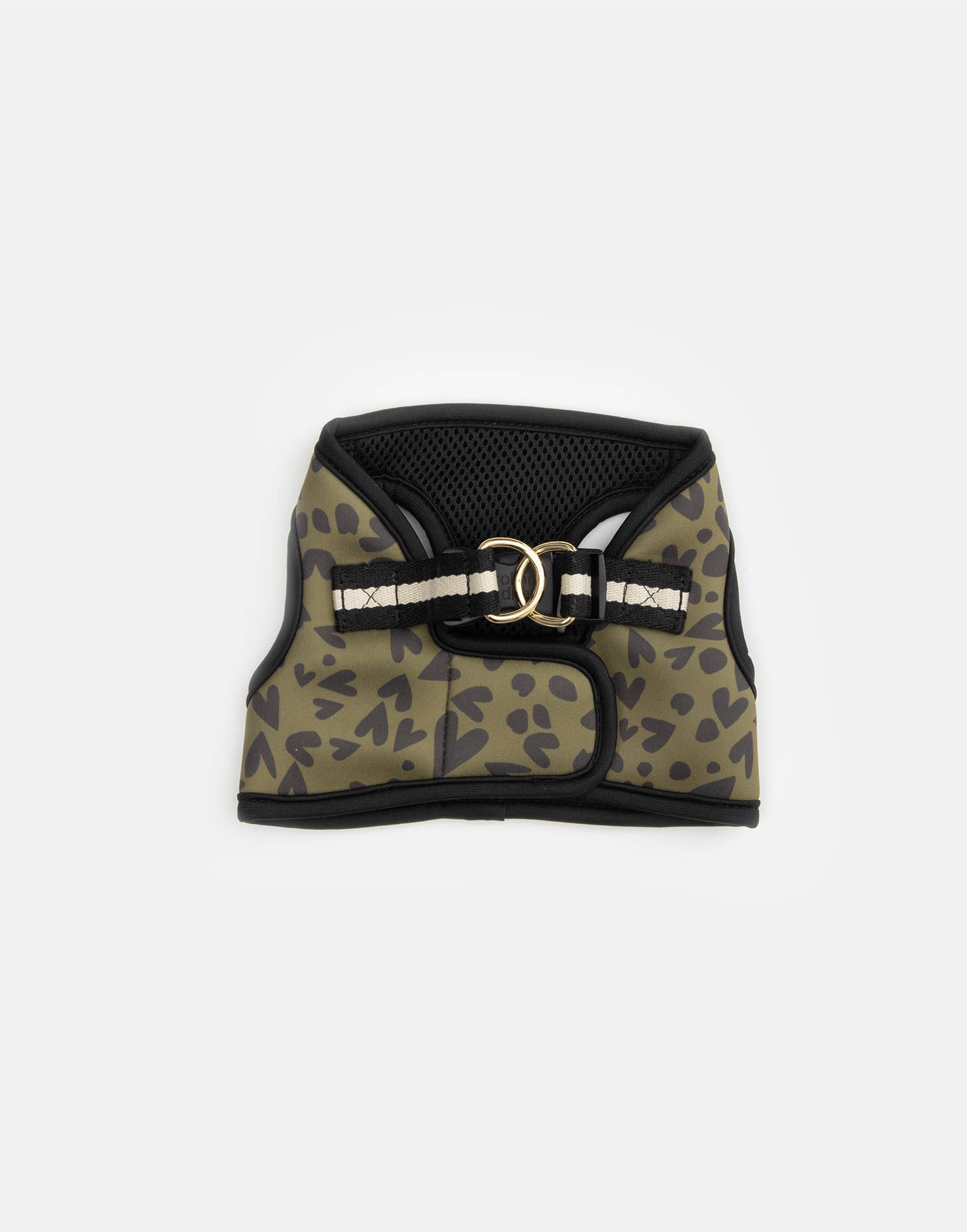 Arnés para perros con estampado de corazones en color caqui, herrajes dorados y anilla en D para correa. Cierre con velcro y clip ajustable. Adecuado para perros pequeños. El amor de los cachorros se vuelve de alta costura con este arnés para perros con corazones en color caqui y negro. Fido se sentirá como una estrella gracias a los herrajes dorados y la anilla en D que permite colocar fácilmente la correa. Perfecto para perros pequeños, este arnés cuenta con velcro y cierre con clip ajustable para un ajuste seguro y cómodo. ¡Es la combinación definitiva de estilo y funcionalidad! (¡Hablamos de un conjunto digno de Instagram!)