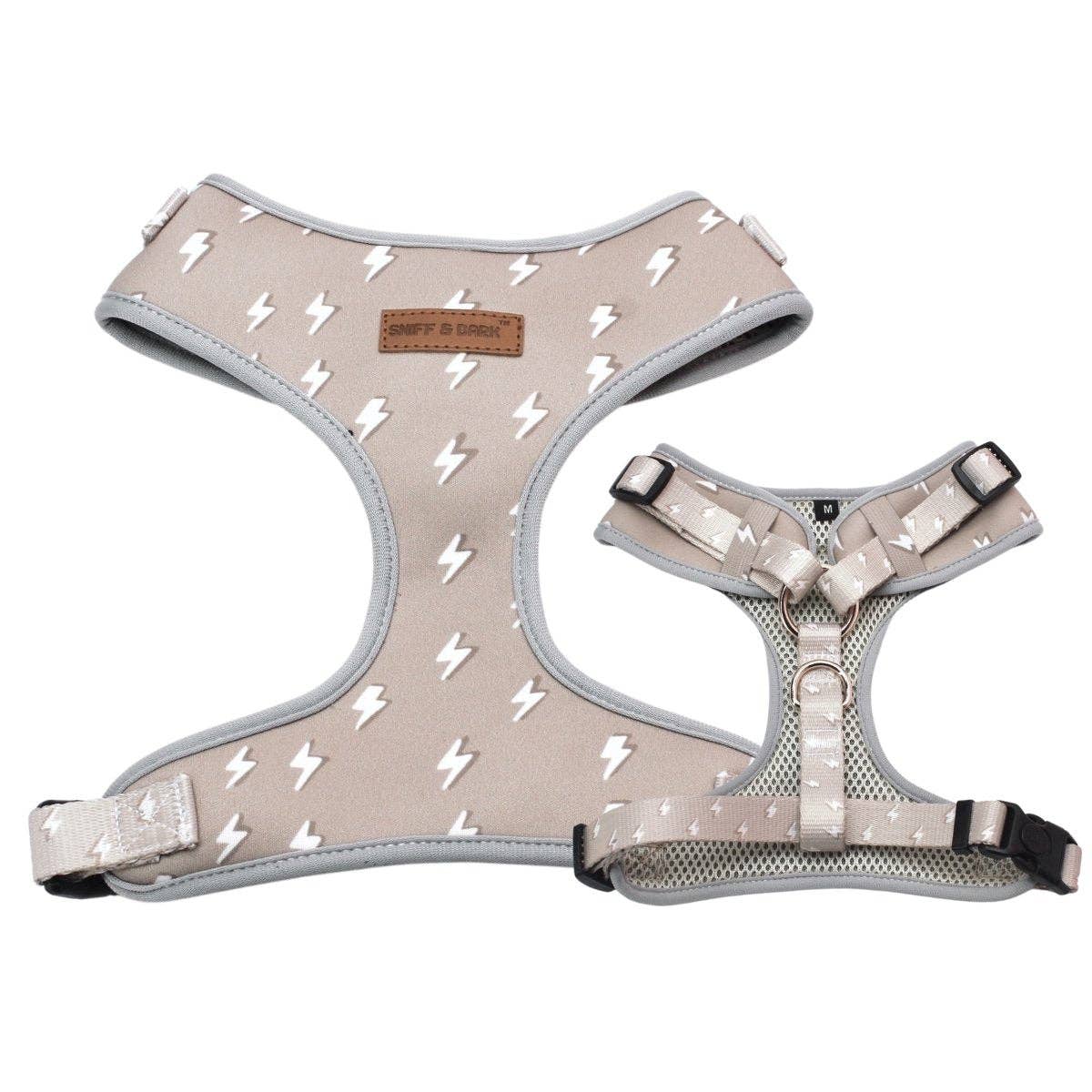 Presentamos el arnés Lightnings: ¡la solución elegante y segura para los paseos diarios de tu cachorro! Este arnés está diseñado para que tu cachorro luzca a la moda con su estampado de rayos, para que tú y tu cachorro siempre puedan ir a la vanguardia con estilo. Consigue un equilibrio entre seguridad y estilo con este arnés.