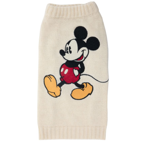 Abriga a tu cachorro con nuestro elegante y acogedor suéter con el inigualable Mickey Mouse. Este suéter llamará la atención y, al mismo tiempo, mantendrá abrigada a tu mascota en las frías noches de invierno. Con un cuello alto acanalado y una imagen clásica de Mickey en tamaño completo, este suéter color marfil está hecho de una suave mezcla de acrílico y poliéster y viene en varios tamaños para un ajuste perfecto. Lavar a mano únicamente.