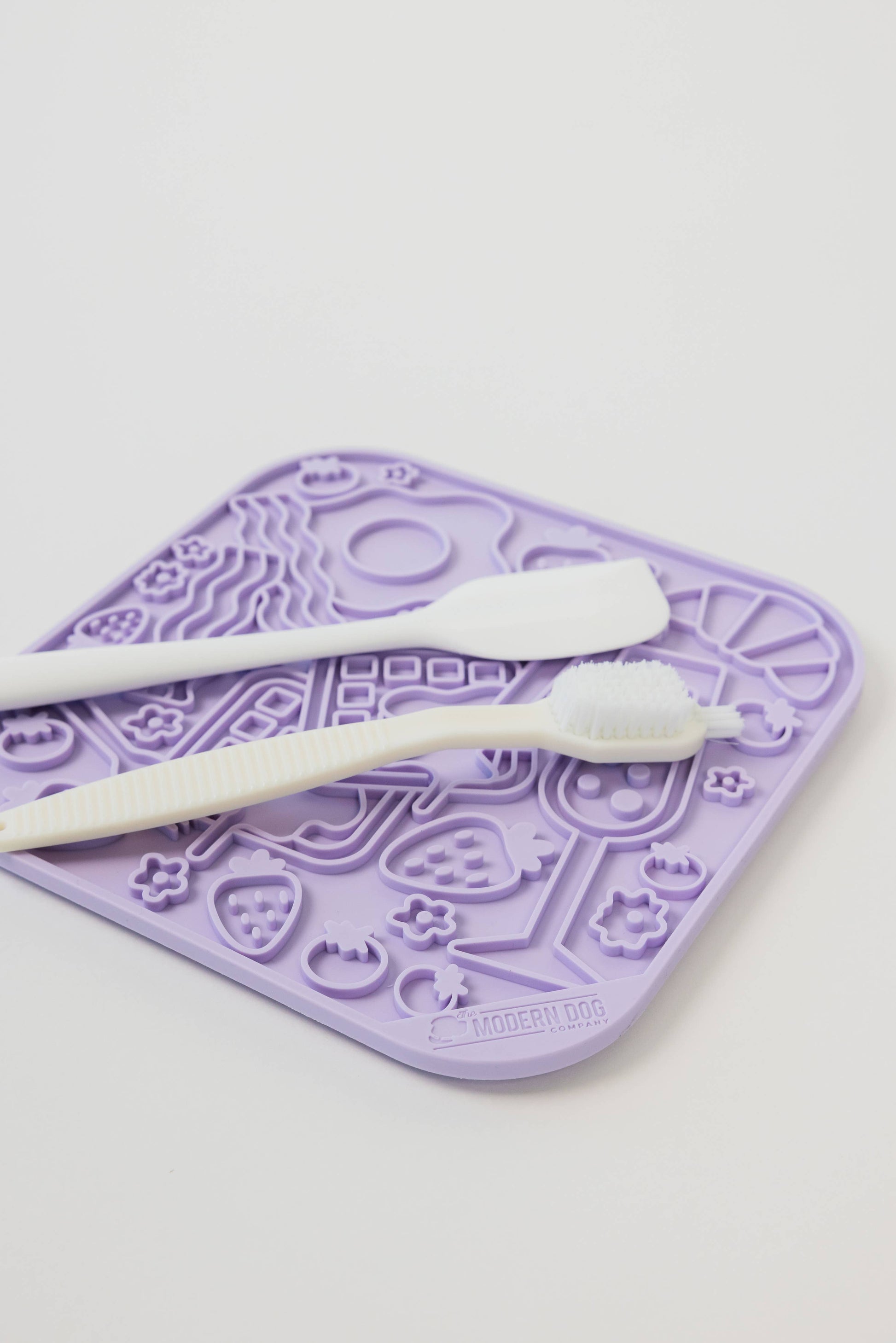 El tapete para lamer Munch'n & Brunch'n fue diseñado en honor a una tradición de fin de semana muy sagrada, el brunch. - Combate el aburrimiento - Alivia y calma - Promueve la estimulación mental - Promueve la salud dental - Ventosas - Apto para lavavajillas y microondas - 100% silicona de grado alimenticio Incluye: 1 tapete para lamer, 1 espátula y 1 cepillo para fregar