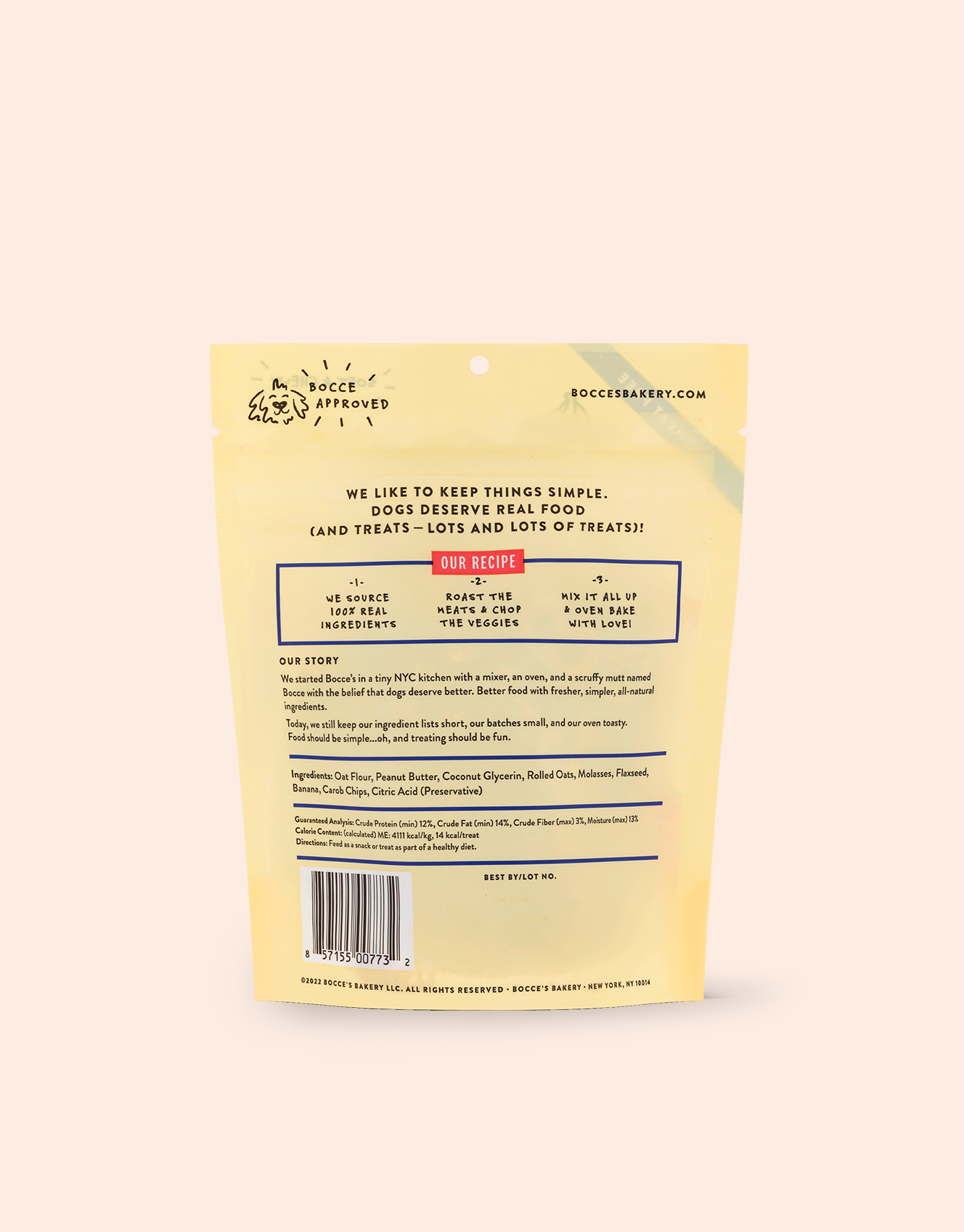 ¡Hagamos un viaje de golosinas a Scoop Shop! Conozca nuestras golosinas suaves y masticables (inspiradas en nuestro dulce favorito del paseo marítimo: ¡el helado!). Salude a PB-Banana Chip: en una galleta suave con ingredientes limitados y conservantes totalmente naturales, perfecta para cachorros que buscan un bocado más masticable.