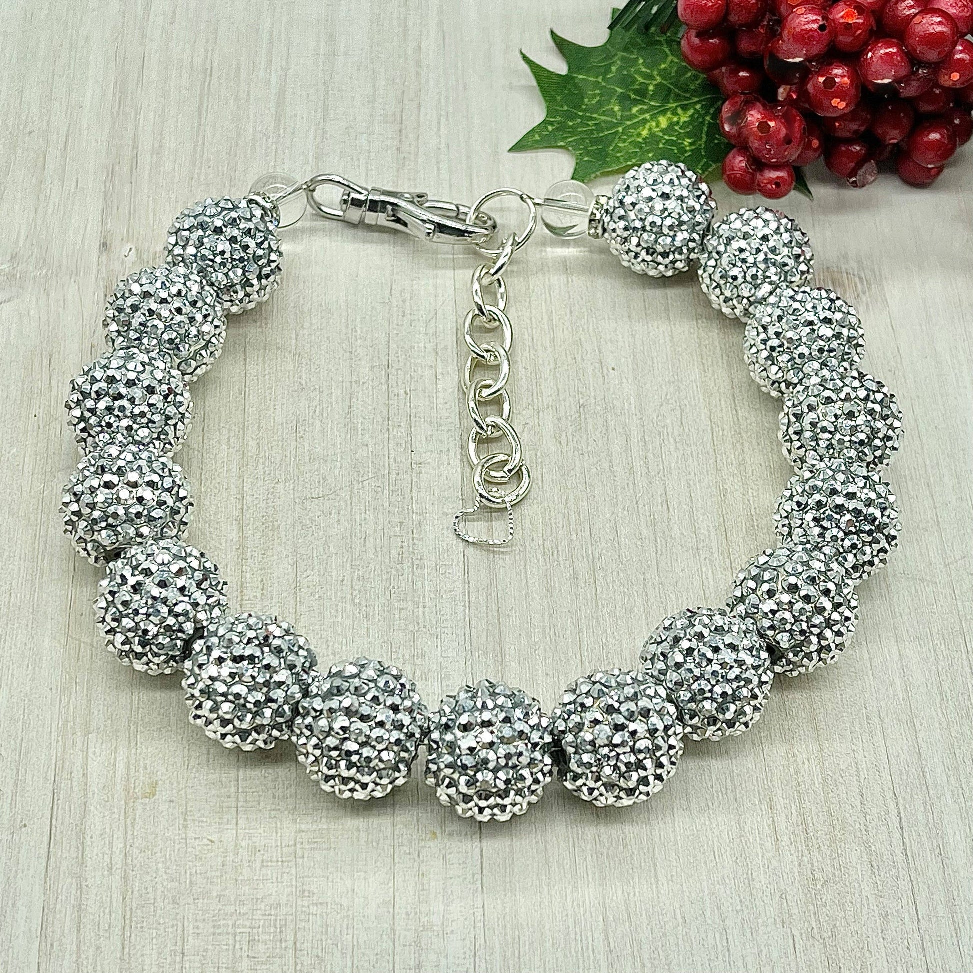 Adorable Necklace to accessorize your Pup and showcase their playful personality. 💕 Features: *20mm Beads *Tiger Wire so they won't stretch *Large silver-toned clasp for convenience *Two-inch extender chain *Made with love for your pet 🐕