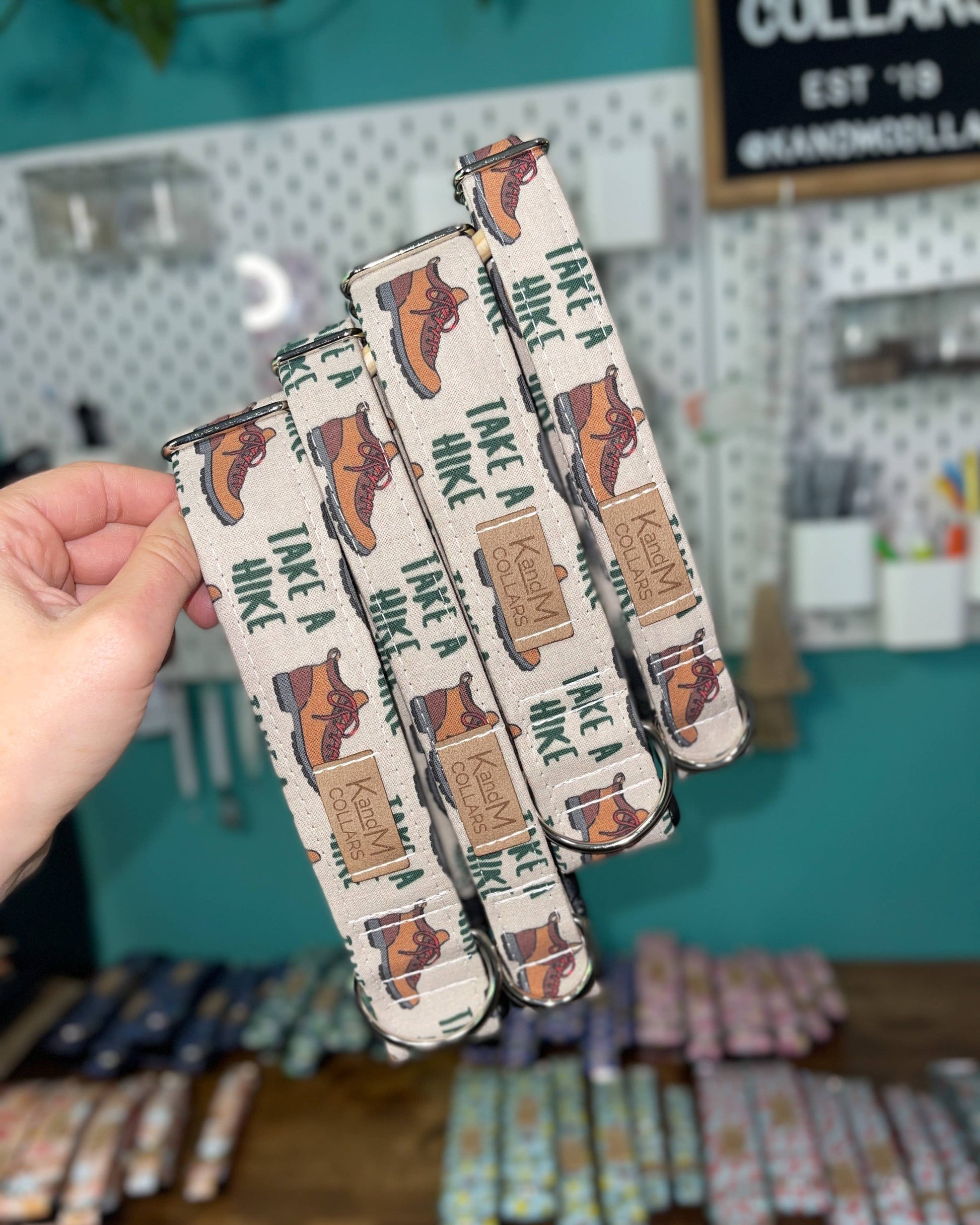 Estos collares se pueden fabricar en anchos de 1” y 1,5” y tienen correas de nailon o polipropileno en el interior de la tela para garantizar que se mantengan duraderos y fuertes.