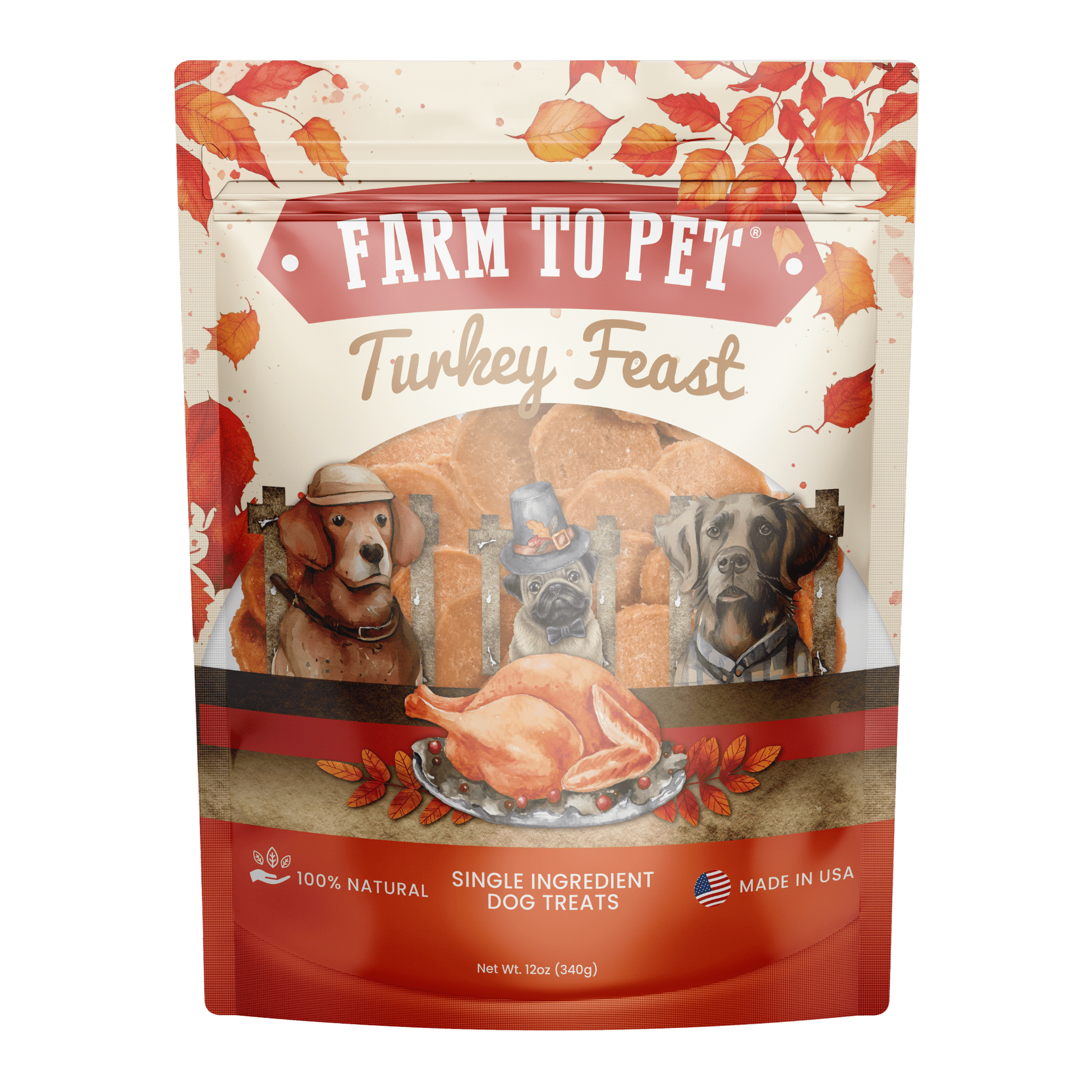 Nuestras golosinas para perros Turkey Feast son perfectas para esas ocasiones especiales en las que quieres que tu cachorro sea parte de la celebración. Disponibles exclusivamente este otoño, nuestras saludables papas fritas de pavo con un solo ingrediente siempre están hechas con pavo fresco de granja sin antibióticos, hormonas ni rellenos. Nuestra bolsa grande de 12 oz de bocadillos es una excelente manera de agasajar a tu cachorro con una cena de Acción de Gracias y asegurarte de que aún tenga suficientes sobras.