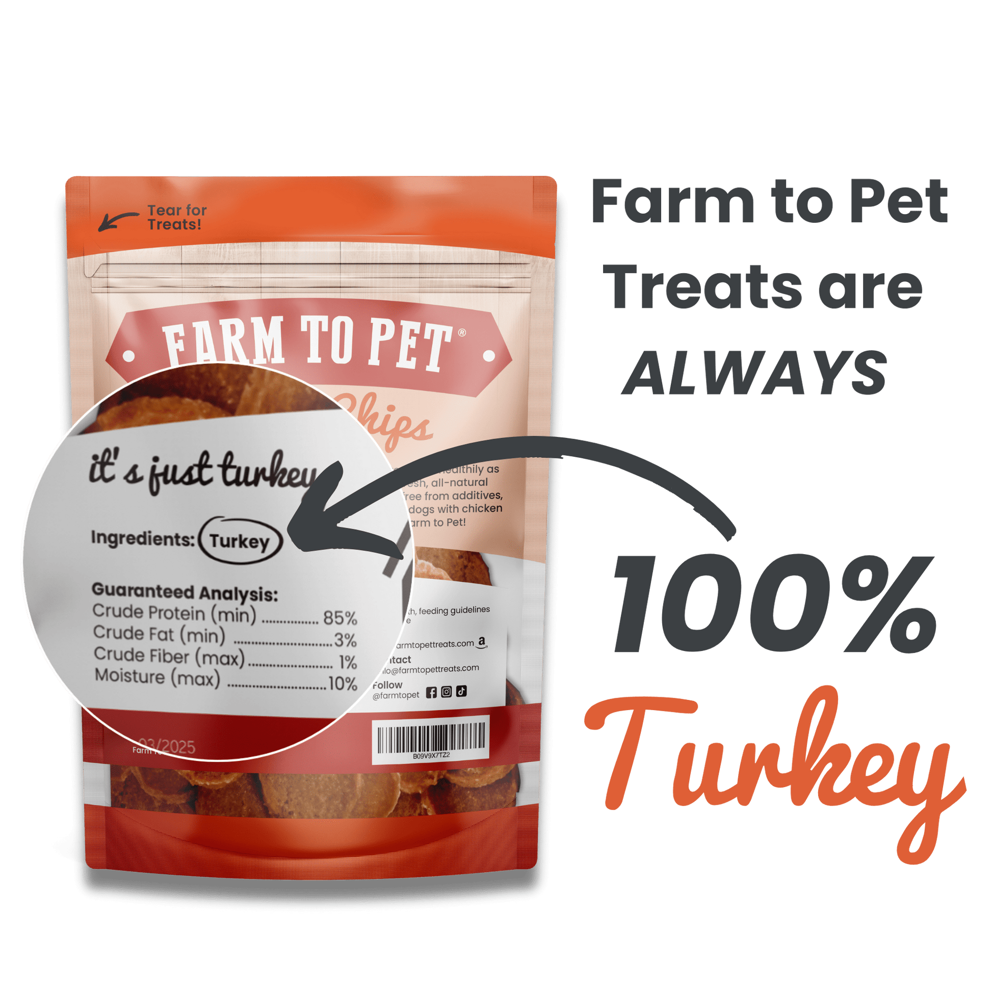Muéstrale a tu cachorro cuánto lo aprecian ofreciéndole pavo sabroso sin restos, huesos ni molestias estomacales. ¡Disfruta de un Día de Acción de Gracias feliz y saludable con Farm to Pet!