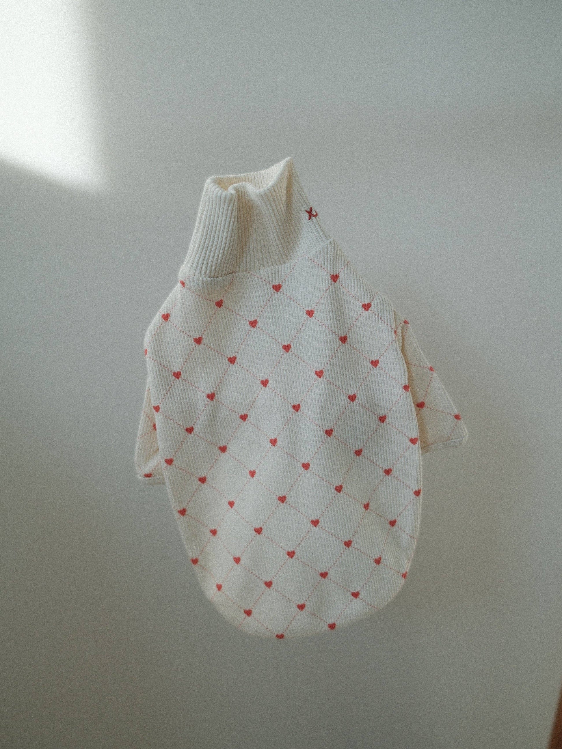 Meet the XOXO Turtleneck — a cozy love letter to your pup. Featuring a delicate heart-stitch pattern throughout and our signature xoxo embroidery tucked sweetly along the neckline, this piece blends softness, charm, and everyday elegance. It’s a subtle statement, made for cuddles and compliments.