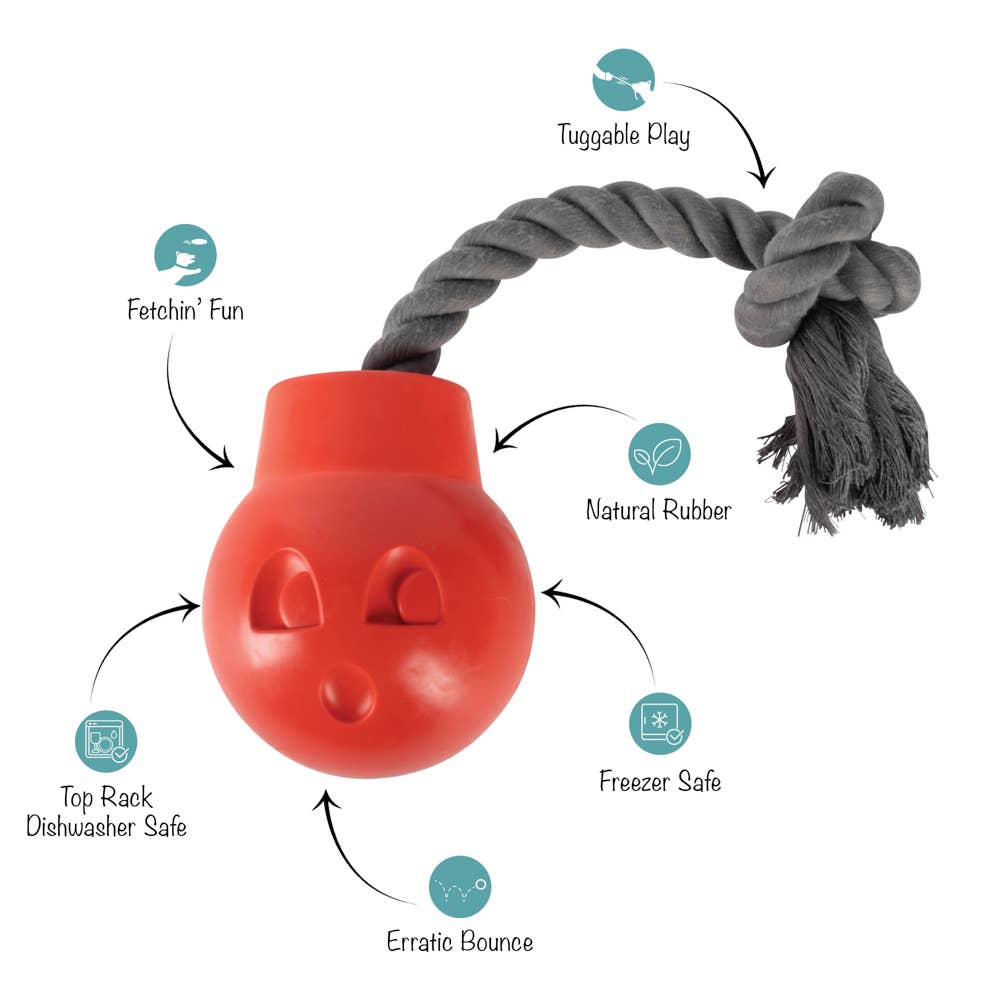 El juguete de goma para perros You Da Bomb es para cachorros a los que les encanta masticar, tirar y jugar mucho a buscar. Fabricado con caucho natural, cuerda para tirar y un rebote errático, este juguete fue creado para un juego interactivo duradero. Simplemente tíralo para divertirte buscando o agárralo fuerte de un extremo mientras tu cachorro tira del otro extremo. Con tantas características geniales, tu cachorro se divertirá mucho con este. Ideal para perros de todos los tamaños y masticadores fuertes. 13” x 3.5”