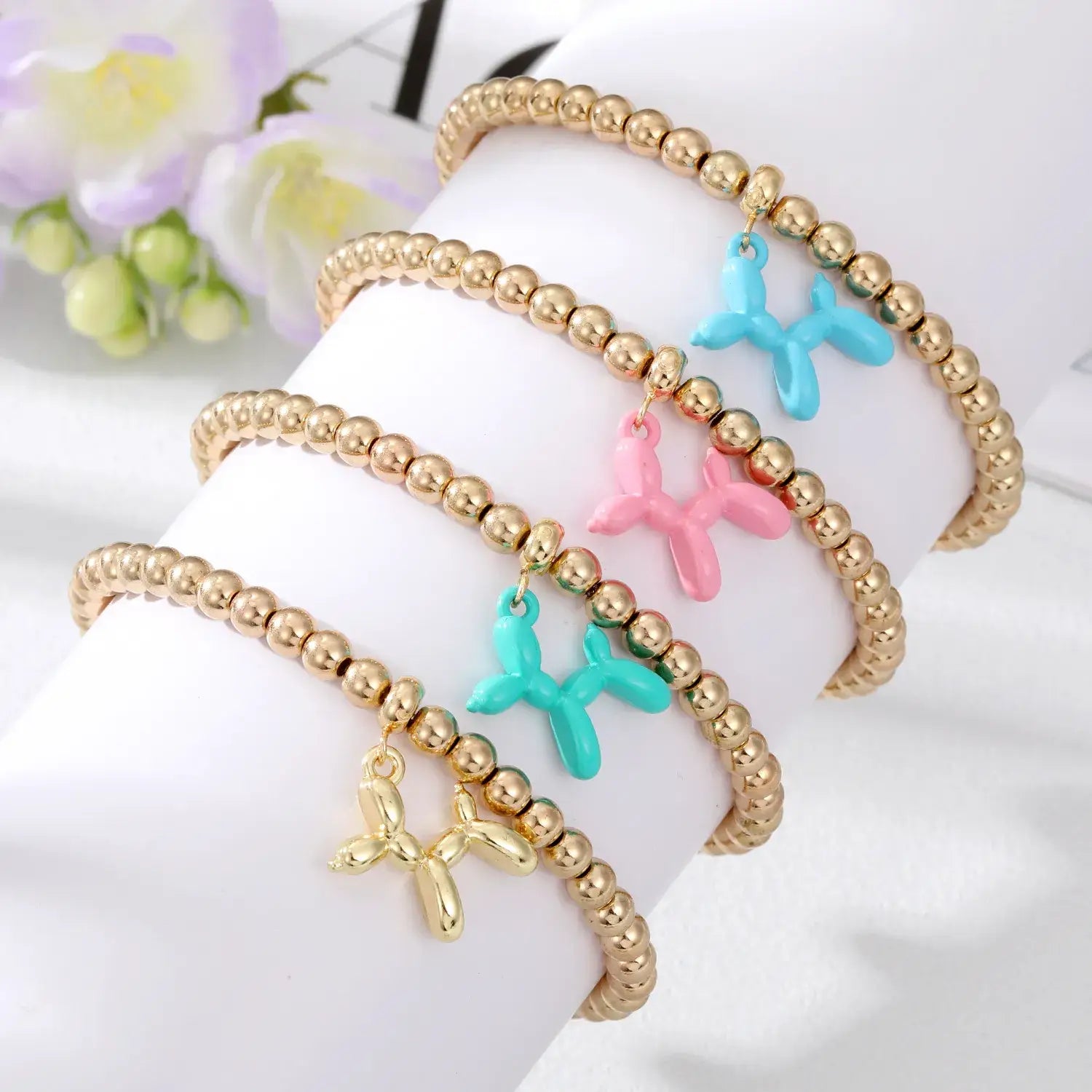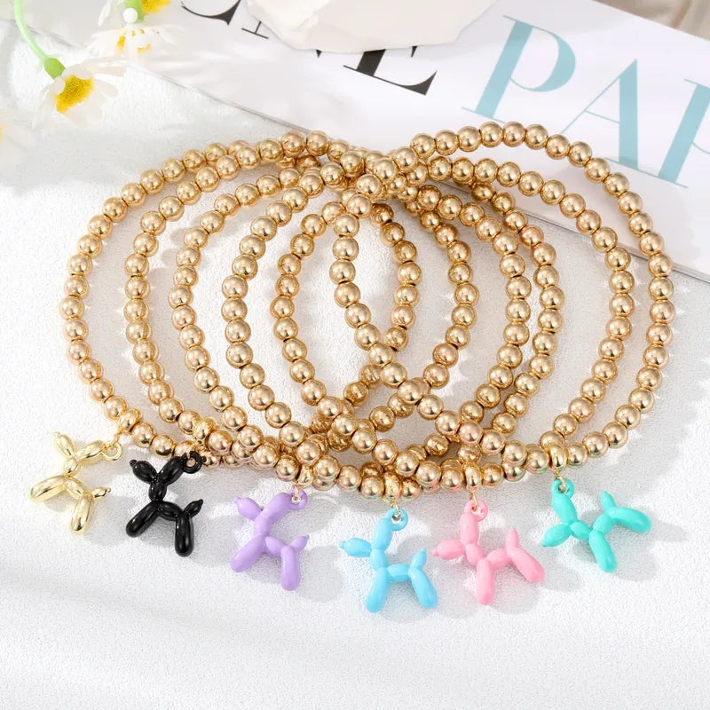 Gold beaded stretch bracelet with Artz dog charm. Made of alloy metal.