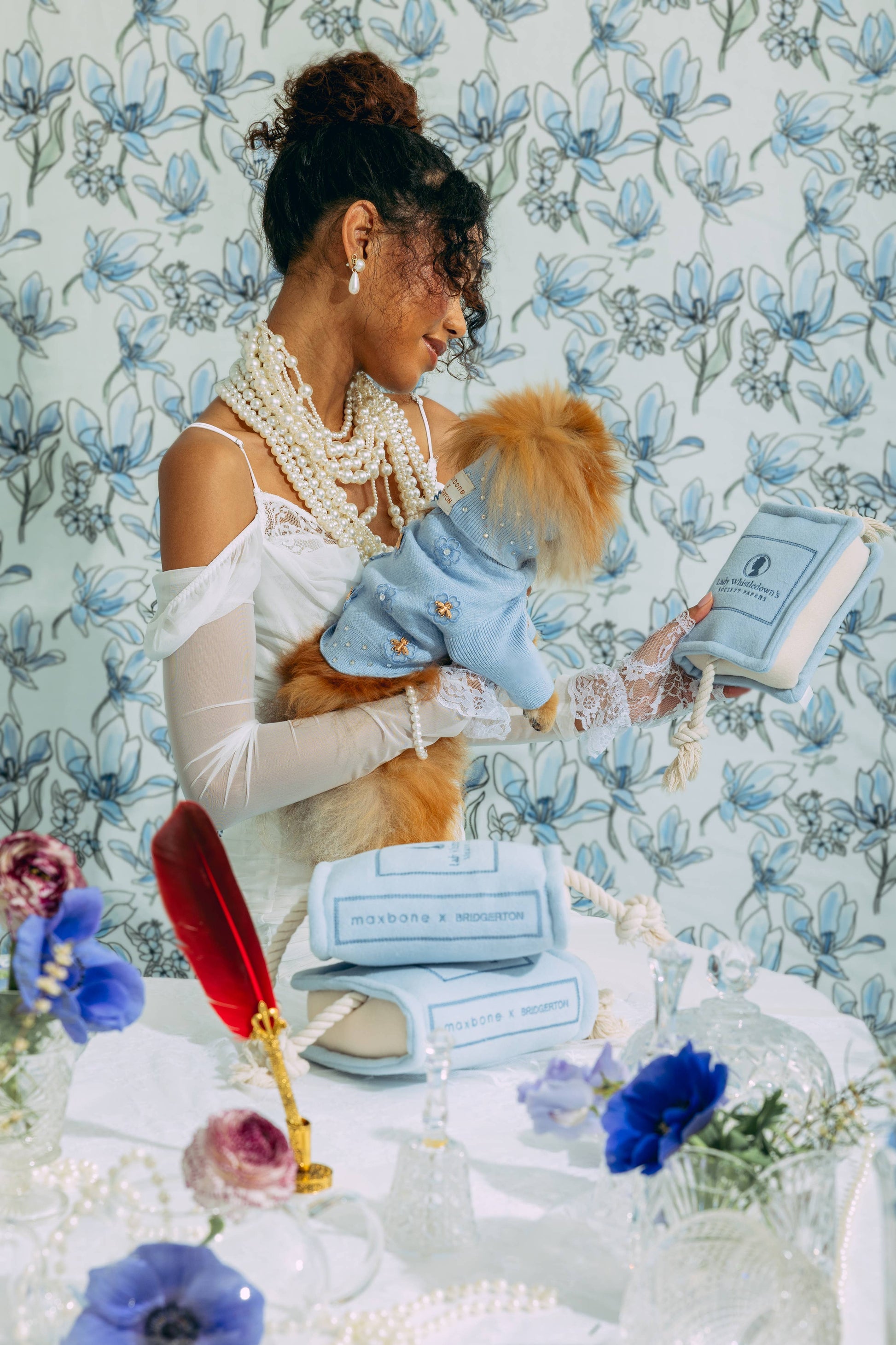 Meet our diamond of the season💎Introducing the Bridgerton x Maxbone Dog Jumper, where luxury meets comfort. Designed with a super soft viscose nylon yarn blend, and adorned with gold bee embellishments, gemstones, and delicate floral appliqués, this jumper exudes regal elegance. Its ribbed turtleneck can be folded for extra warmth or left unfolded for longer necks. With a super stretch easy-fit design and leash hole for convenience, it's both stylish and practical. Handwash for easy care, and let your pet step out in true Bridgerton style.