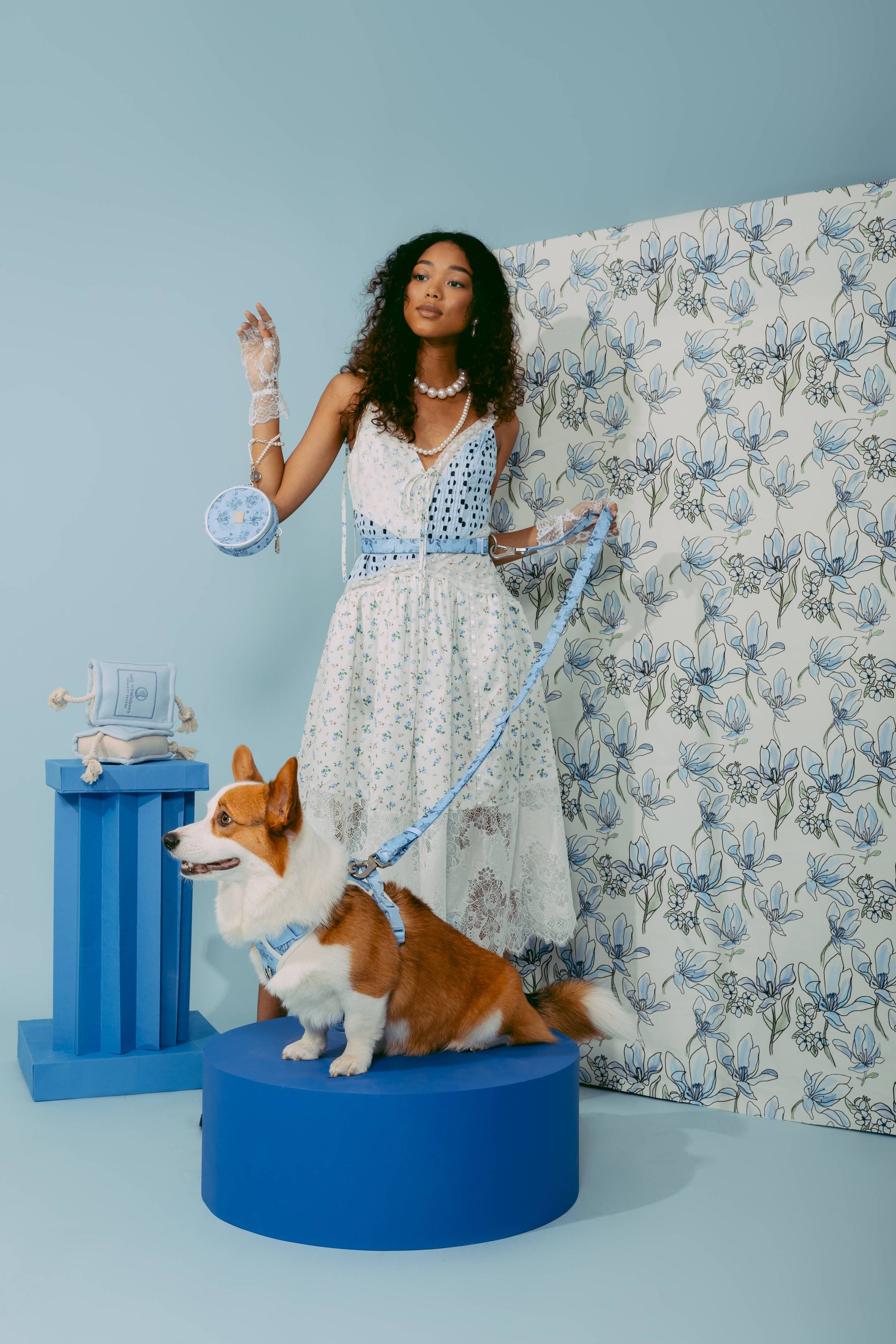 Ladies and Gentlemen of the ton, meet the Bridgerton x Maxbone Leash Set: a fusion of functionality and sophistication inspired by the acclaimed Shondaland series on Netflix, Bridgerton. Designed with premium materials and silver-plated hardware, this leash set is designed to elevate your daily walks with your pet to a new level of luxury. The floral Toile prints, reminiscent of the Bridgerton universe, add a touch of romance to every walk. Plus, the rounded pouch with pearl embellishments not only serves as a chic accessory but can also be worn around your wrist for added convenience. Each detail of the set embodies the grace of the Regency era, ensuring you and your pet make a striking impression wherever you go.