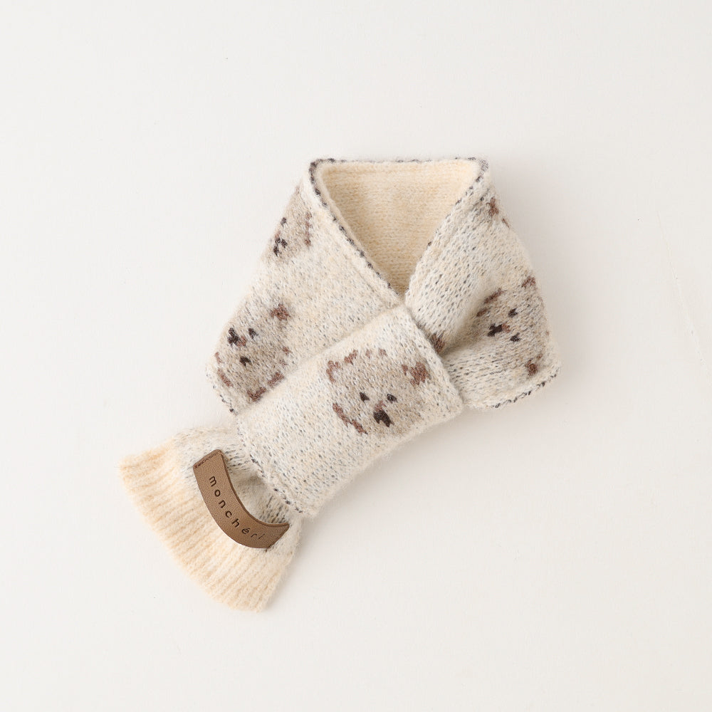 Introducing a jacquard scarf with a cute bear pattern randomly arranged.