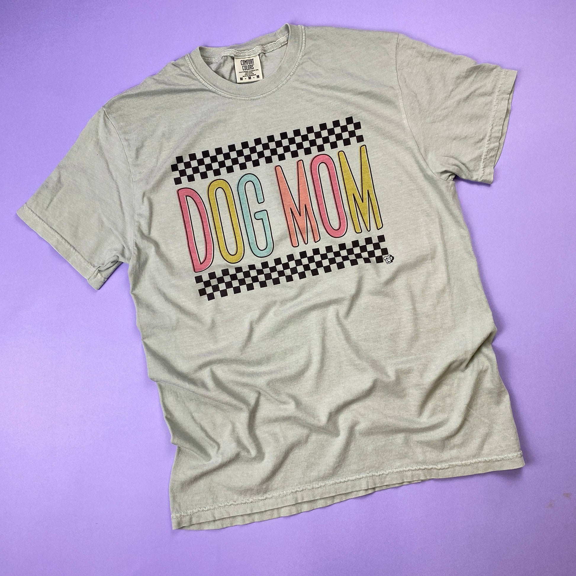 Checkered Colored Dog Mom Tee made with the softest materials. Color of Shirt: Comfort Colors Bay Color of Ink: Multicolor DTF PRINTED 100% Cotton "This tee is the perfect blend of softness and style! With its checkered design and comfortable Comfort Colors Bay fabric, you'll be the most fashionable dog mom on the block. Plus, our multicolor DTF printed ink adds a pop of fun to this 100% cotton shirt. Get ready to strut your stuff while staying cozy and cool!"