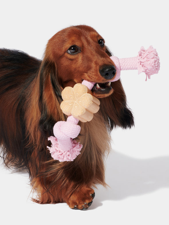 Protect your furniture and keep your shoes safe with our delightful cherry blossom knot rope toy! This cherry blossom-shaped toy is crafted from premium beech wood, featuring dual knots rope for added fun! It combines the natural beauty of cherry blossoms with the durability and playfulness of beech wood. The cherry blossom shape adds a touch of elegance, while the dual knots rope provides interactive play opportunities. Your dog will love the satisfying texture of the beech wood as they chew and play with this toy. Not only does it entertain them, but it also promotes dental health by helping to clean their teeth and gums. Treat your furry friend to the ultimate chewing and play experience with our beech wood cherry blossom toy with dual knots rope! Size L:12.6*3*2.4 in (L*W*H)