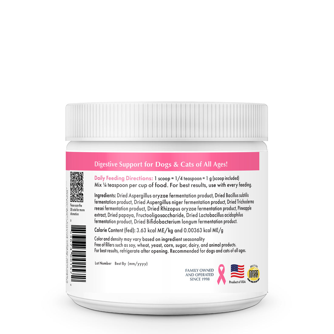 Of the three major classes of enzymes, digestive enzymes are responsible for breaking down food into its constituent nutrients for the body to utilize. Different enzymes break down different foods. When enzyme stores are low, it is harder for the digestive system to break down fats, protein, and carbohydrates. Poor digestion can cause pets to suffer from constipation, diarrhea, flatulence, and more. Wholistic Digest-All Plus™ is a unique enzyme blend of pure, freeze-dried, plant, and plant-based enzymes with added maximum concentrations of prebiotics and probiotics. Formulated for maximum digestive support!