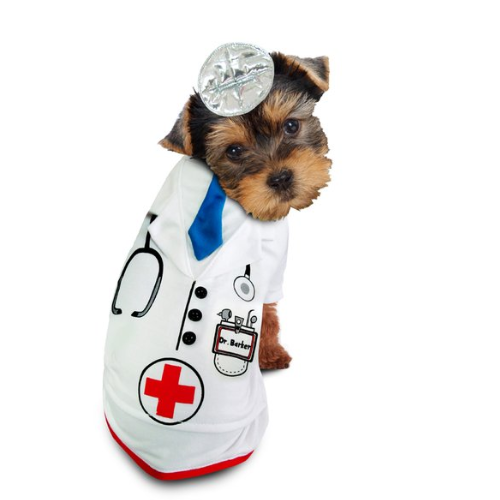 Doctor-recommended and board-approved, this two-piece premium Doctor costume will dress your pup to cure any ailment. The one-piece bodysuit slips on easily, it is complete with a tie and lapel. It will be comfortable for your pooch, the front Velcro closure makes it easy to dress and secures a great comfortable fit. The finishing touch is the adjustable doctor's head mirror reflector for those important operations.
