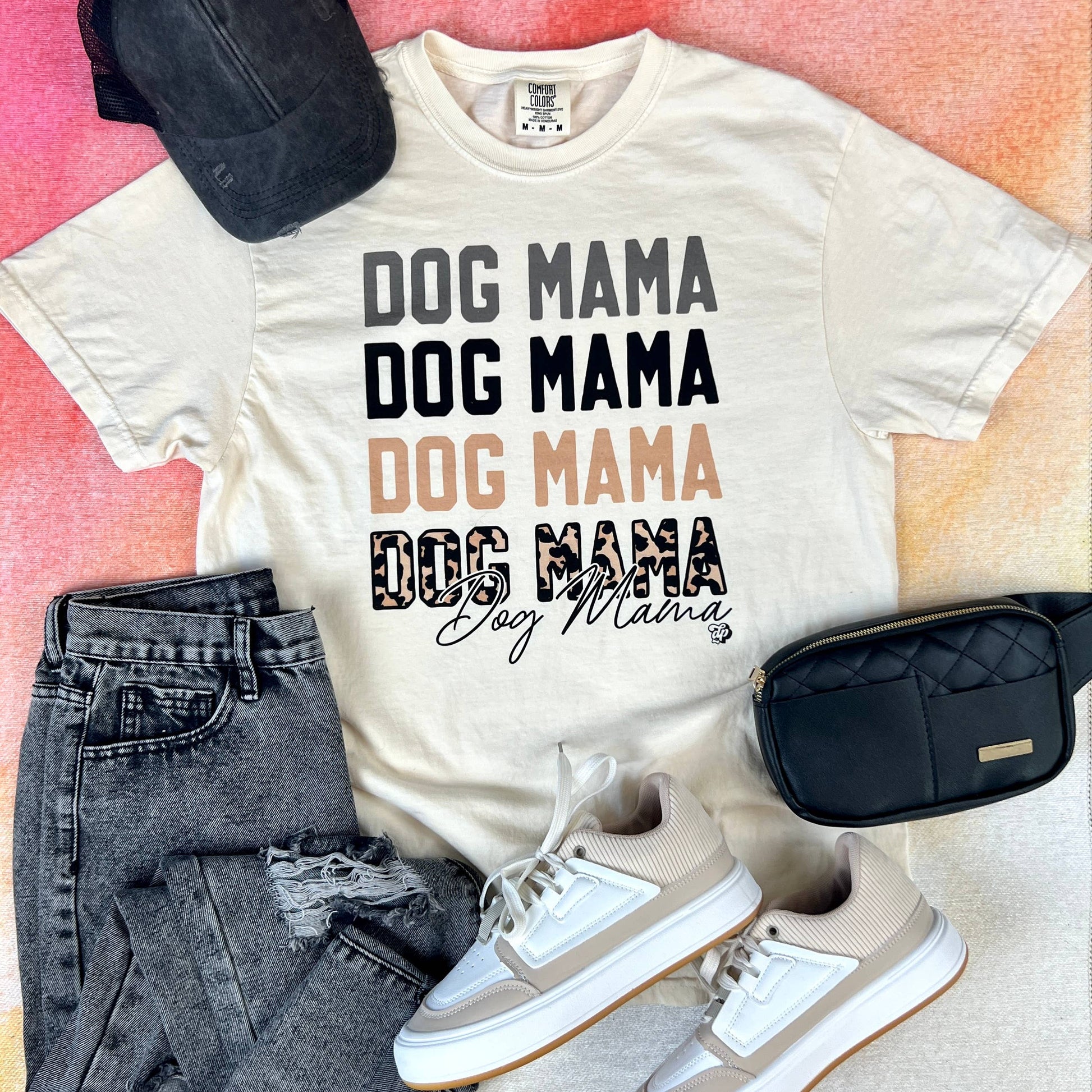 Dog Mama Repeat Tan Leopard Tee Top Shirt