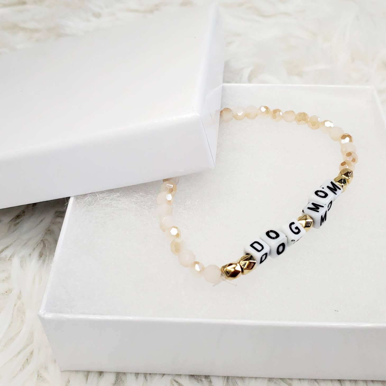 Dog Mom Jewelry, Beaded Stretch Bracelet, Gifts for Pet Lovers Are you looking for a simple stretch bracelet for you as a dog mom? Whichever the case, this Dog Mom Beaded Stretch Bracelet is the perfect gift. This bracelet is very simple with Cream and Tan beads along with gold stainless steel spacers.