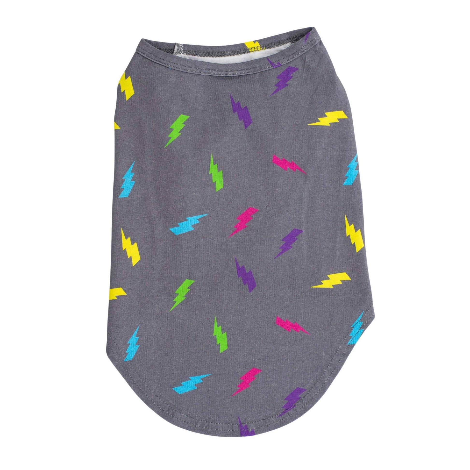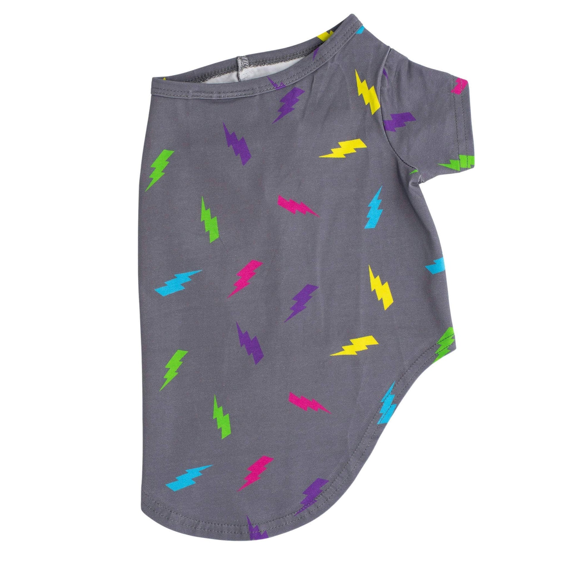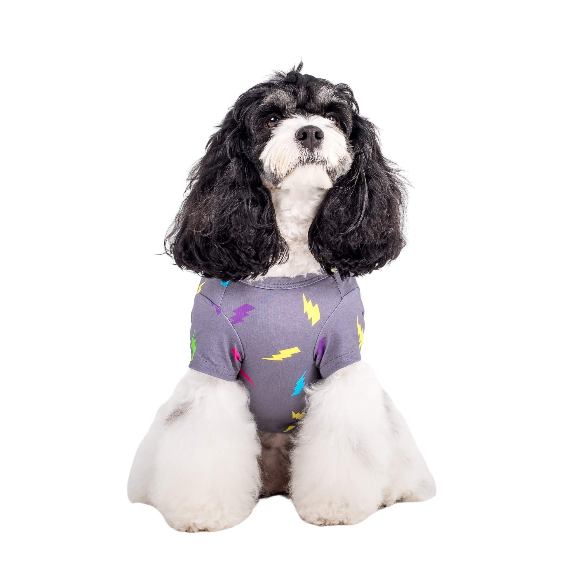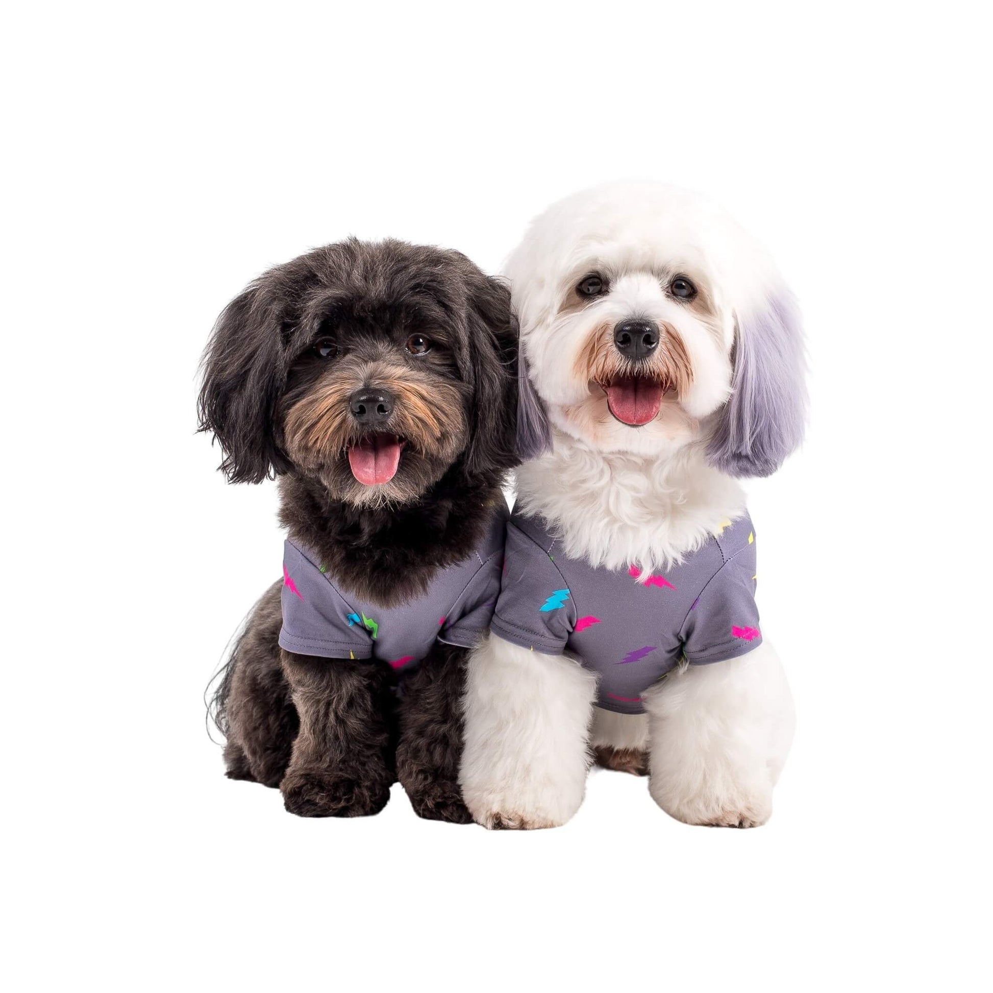 The dog shirts are made of 95% cotton and 5% spandex. This allows the fabric to have stretch and to fit a wide range of breeds.