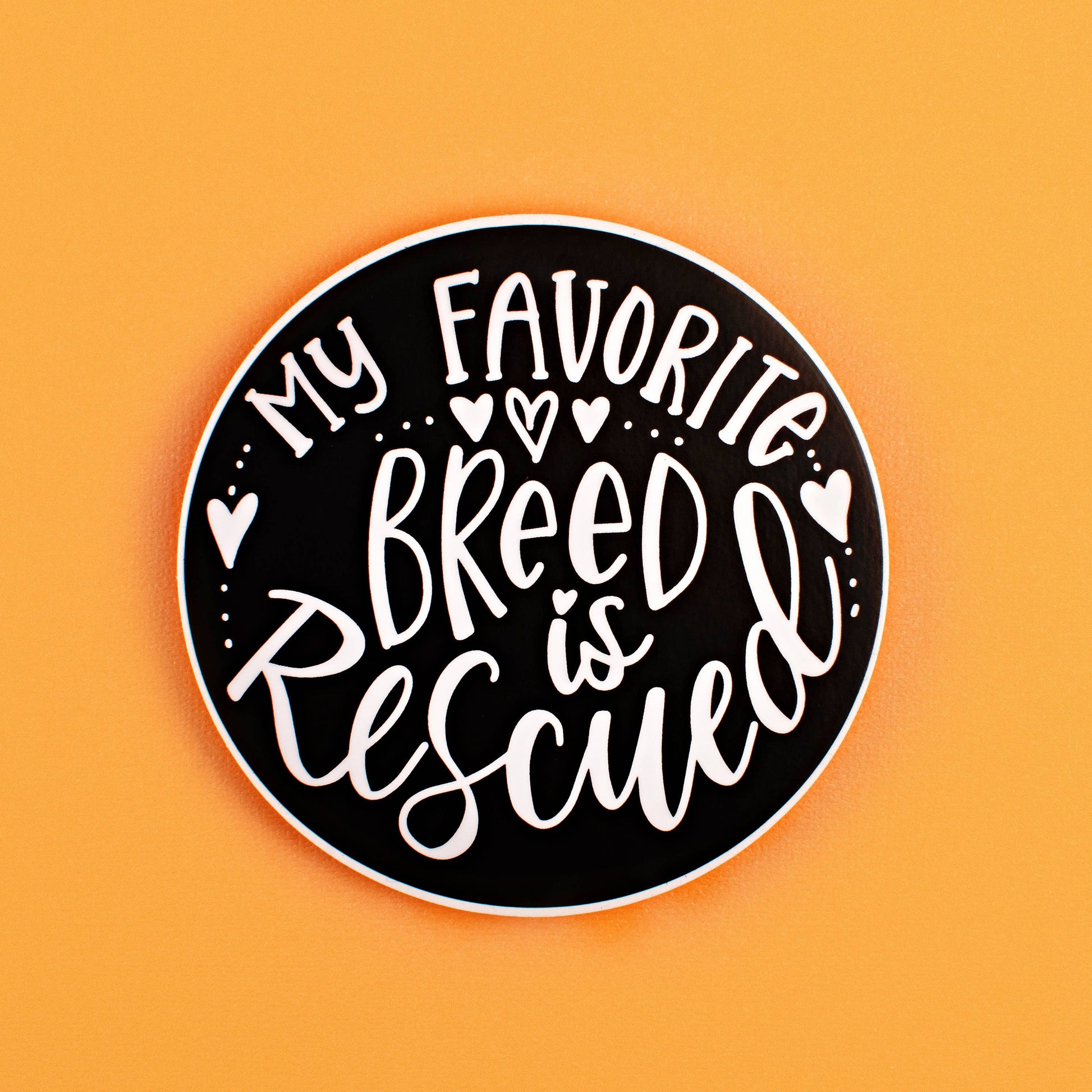 This "My Favorite Breed is Rescued" magnet is the perfect gift or accessory for rescue dog moms and dads. It will stick to anything magnetic! ▴ WHY YOU'LL LOVE IT ▴ 🇺🇸 Made in USA ☔️ Weatherproof 💯 Hand Lettered Design 💦 Dishwasher Safe MAGNET SIZE: Each magnet measures 4 inches round.