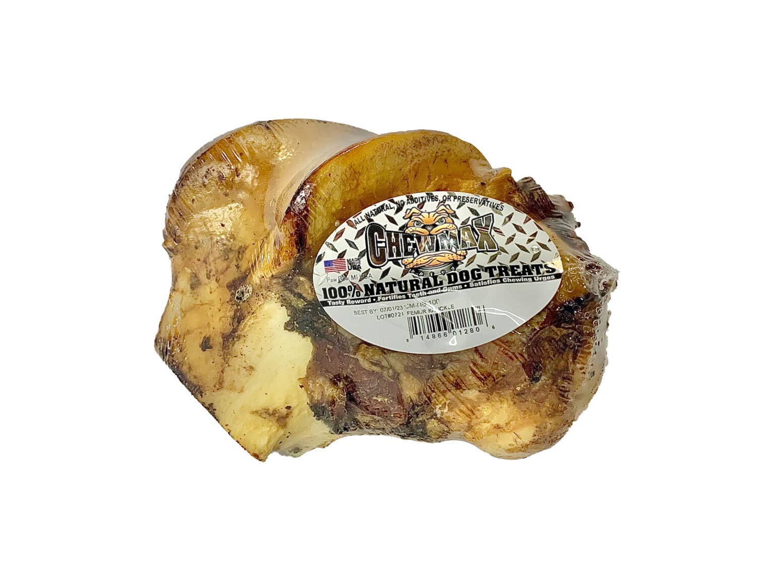 The Beef Femur Knuckle is ChewMax’s largest knuckle. Made with all-natural beef bones, and never seeing the use of preservatives, flavorings, or additives, femur knuckles are great for giving your dog a chew that is both satisfying and healthy! The spherical shape of the femur knuckle makes it hard for extreme chewers to get a solid bite and destroy the bone in one bite. On top of this, the shape is perfect for maximizing the tartar and plaque removal characteristic of most natural bone!