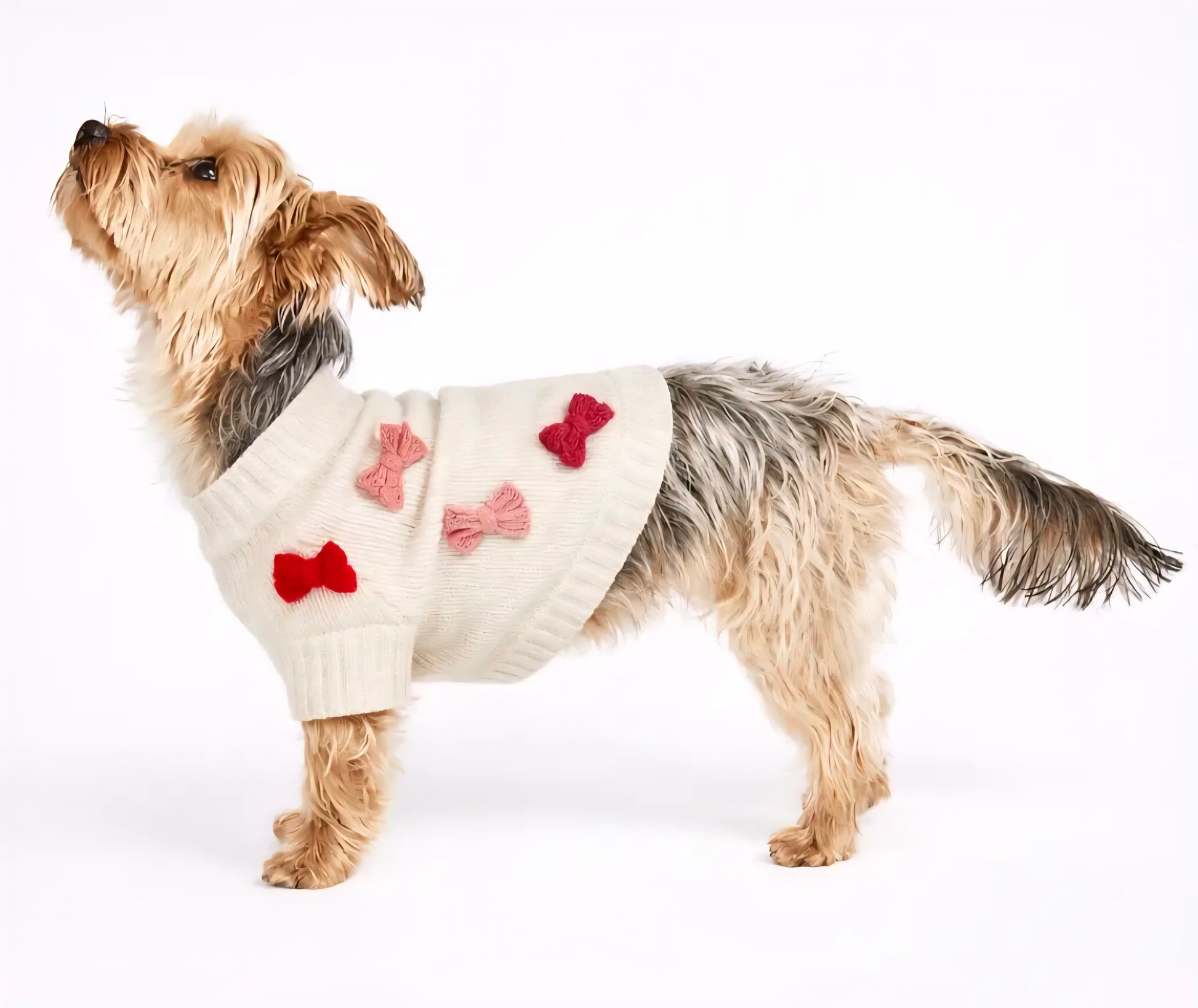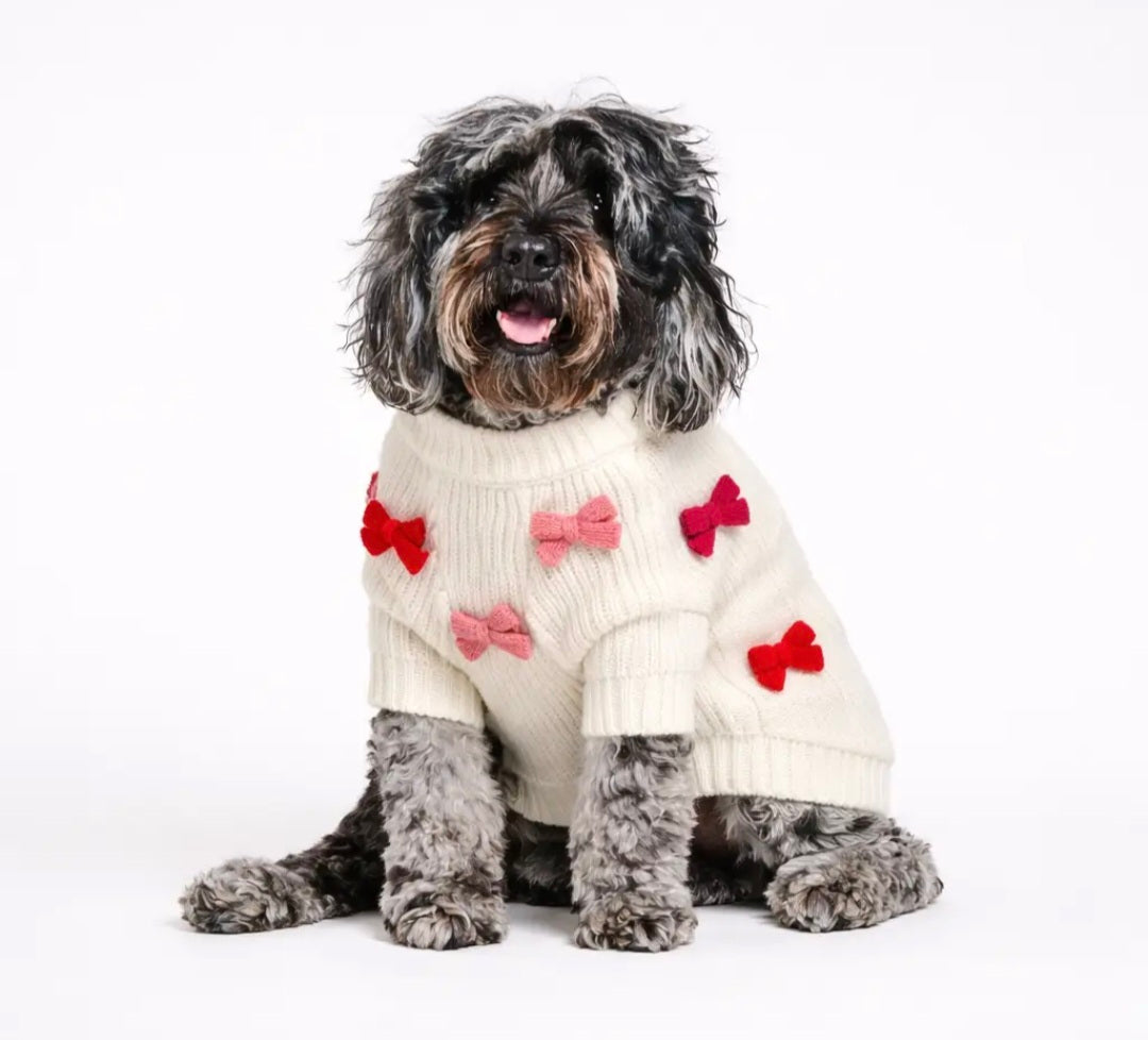 Bow Sweater in Red & Pink Sweater is cozy, charming, and full of love. Designed with a bold 3D heart detail and a soft, comfortable knit, it’s made for pups who wear their hearts on their sleeves. Perfect for chilly days, Valentine’s moments, and everyday adventures, this sweater adds a playful pop of romance to any look—because love is always in style. Just in time for Valentine’s Day, it’s the perfect outfit for festive walks, cozy cuddles, and celebrating your favorite furry Valentine.