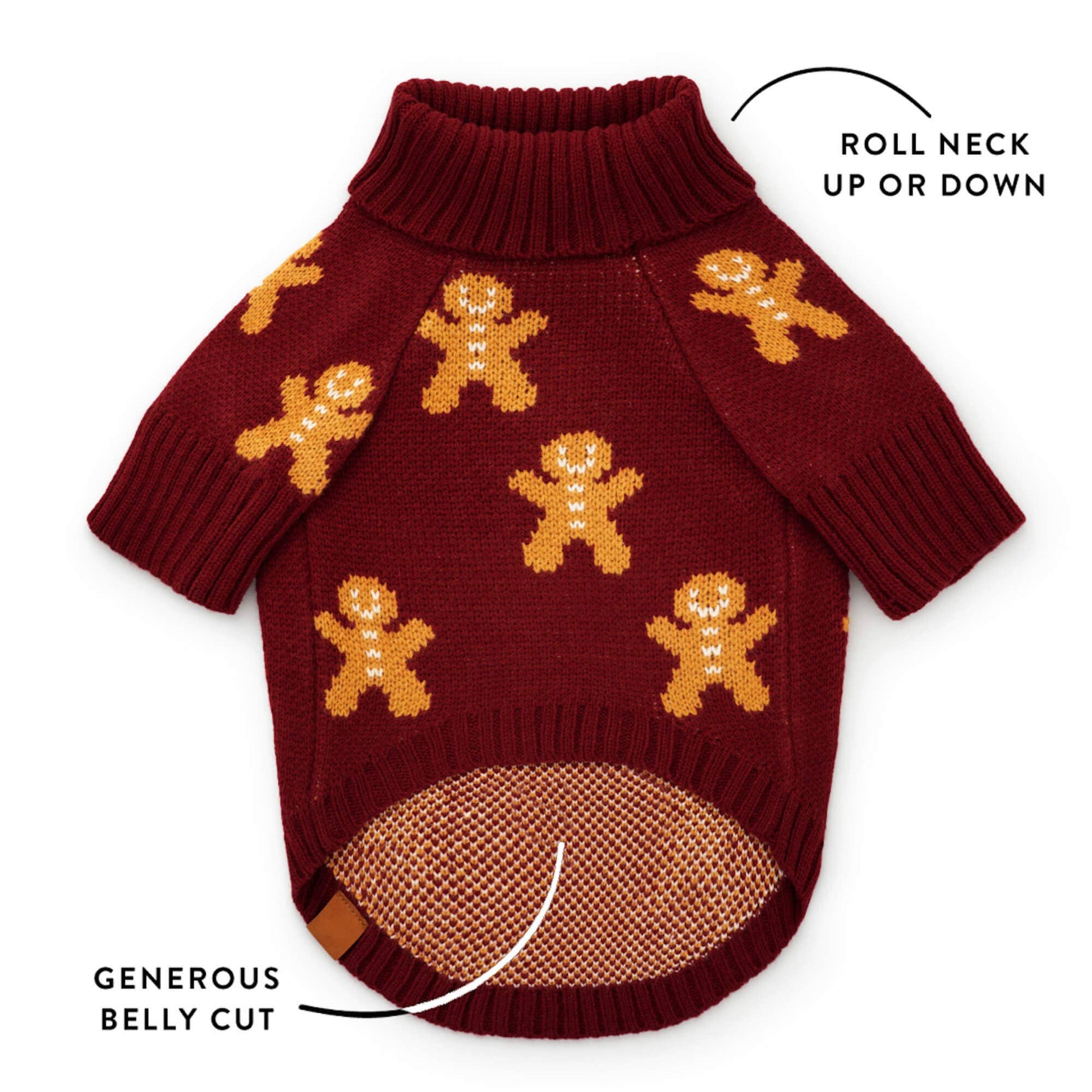 Pullover turtleneck style * Super soft, machine washable knit * Hole opening for easy leash access * Roll neck and sleeves up or down for the perfect fit *Please measure your dog to ensure a perfect fit. See our size guide for measuring tips and more details. Note: if your dog is extra furry, we recommend sizing up. Similarly, if your dog is between sizes, we recommend going up one size for comfort and freedom of movement. * XXS: back length: 9-12" / chest: 12-14" * XS: back length: 11-14" / chest: 14-16" * S: back length: 13-16" / chest: 16-18" * M: back length: 15-20" / chest: 18-22" * L: back length: 18-24" / chest: 22-26" * XL: back length: 22-29" / chest: 26-32" MATERIALS AND CARE * 100% acrylic * Machine wash cold, air dry flat