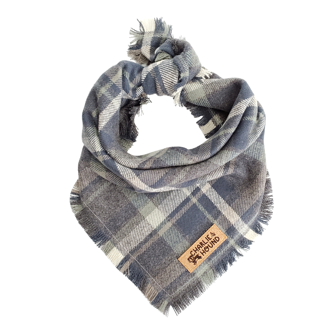 Gray & Navy Plaid Flannel Tie-on Dog Bandana