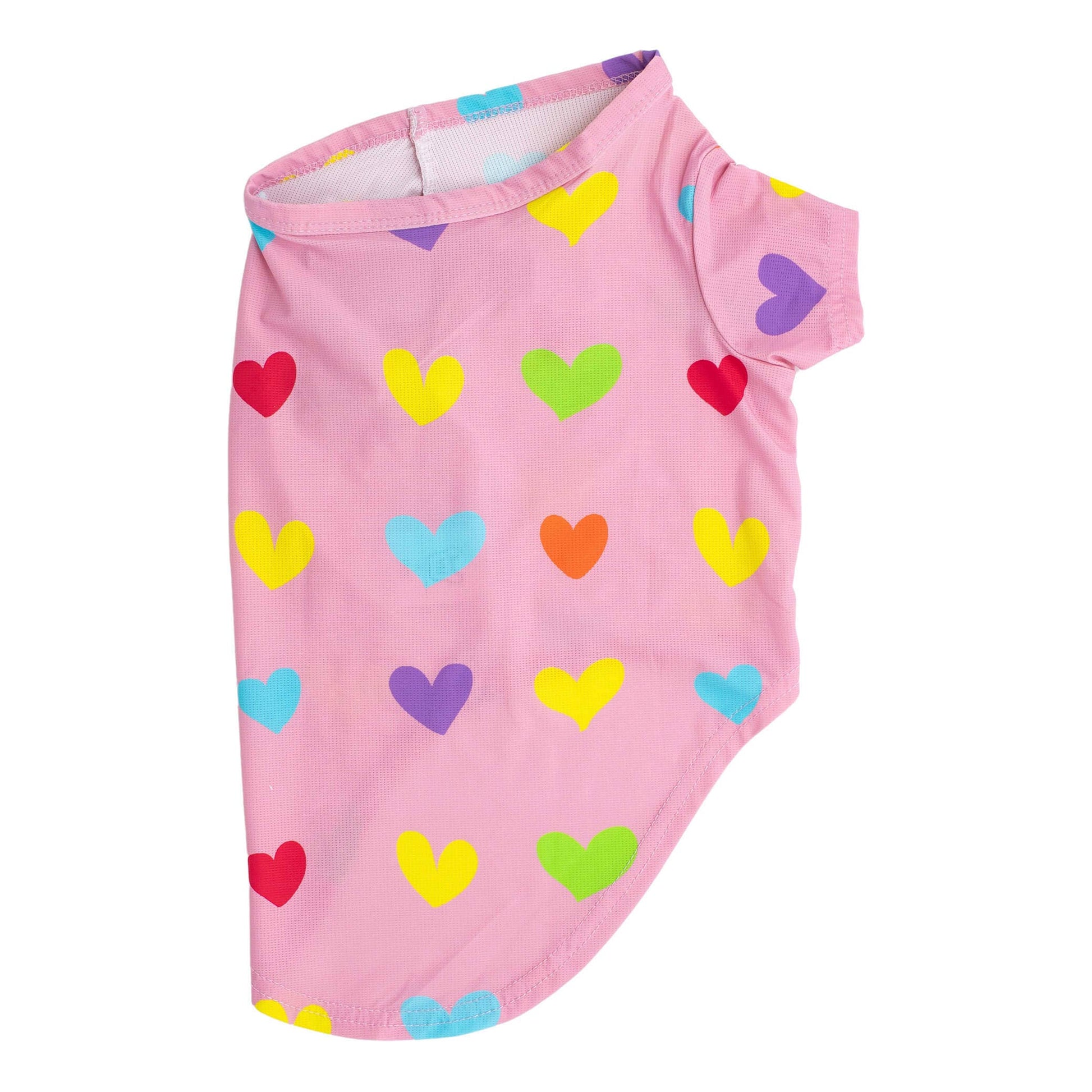 The dog shirts are made of 95% cotton and 5% spandex. This allows the fabric to have stretch and to fit a wide range of breeds. This dog shirt is designed to keep your pup cool this summer. This shirt is designed to hold water, and has a breathable mesh skin that helps to conduce evaporation. How to use this cooling shirt. 1) Before placing this shirt on your dog, place the shirt under water. 2) Wring the shirt out lightly and place on your dog. 3) The shirt will now start to help cool your dog down. Wet as required.