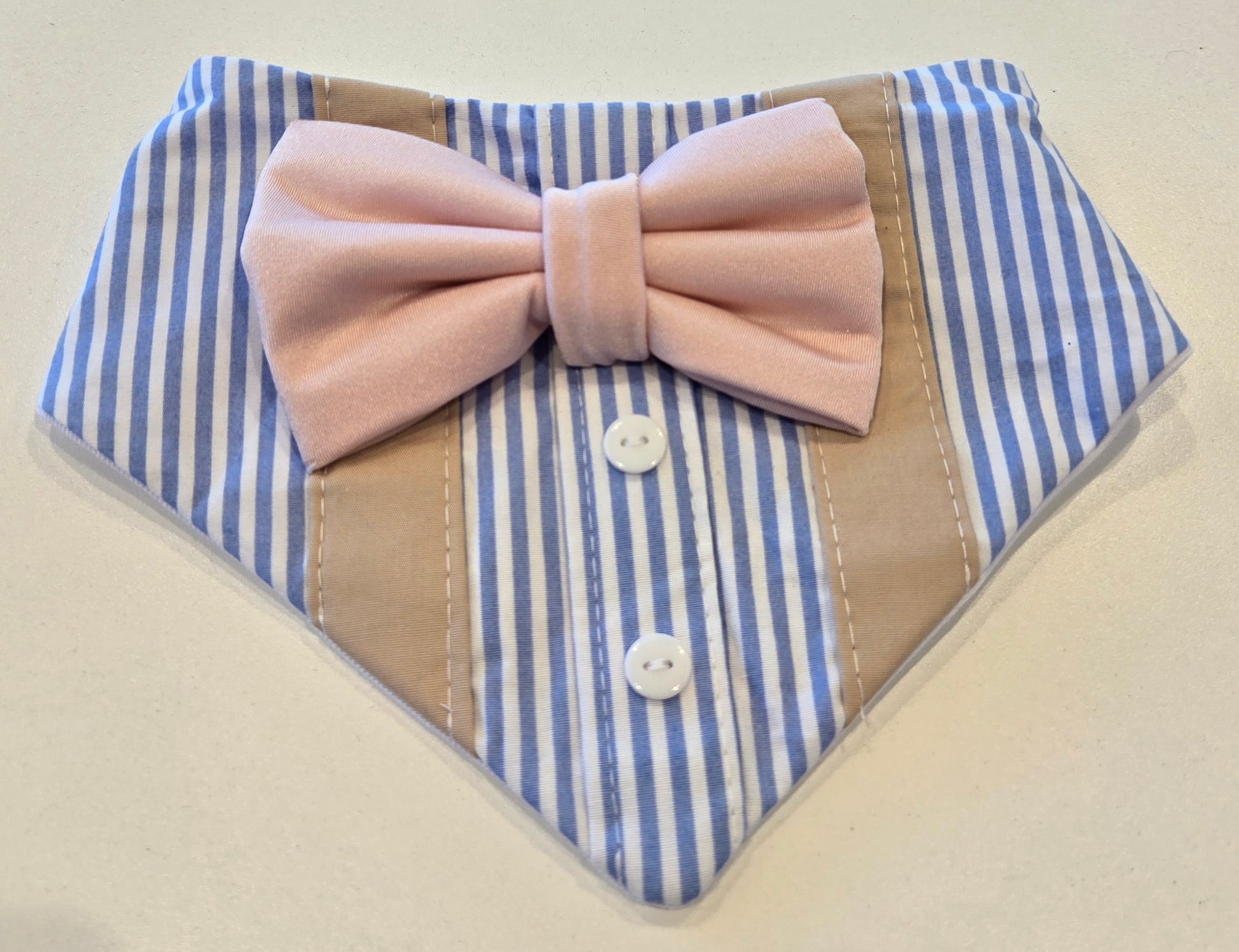 River Bandana will make your pup the center of attention, styled as a shirt with a statement pink bow and beige braces. Your dog is bound to be the best-dressed! Care -Do not tumble dry this product. Sizing: TO FIT NECK SIZE: