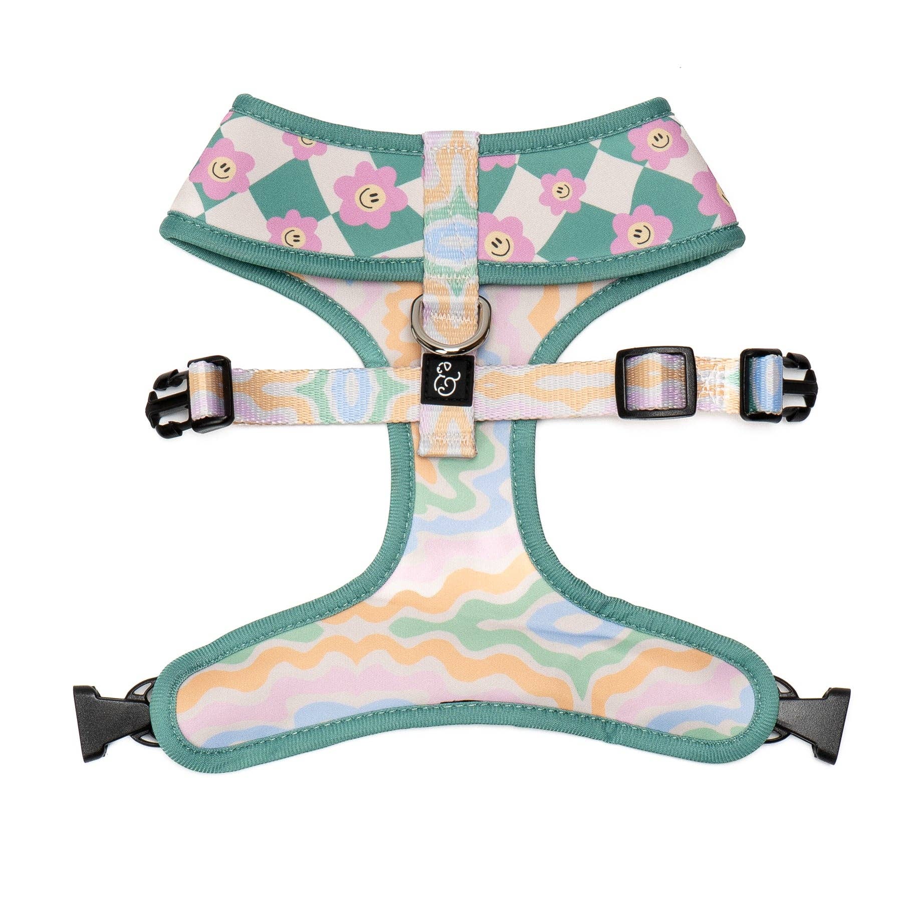 It's time to just chiiiiiiiiillll and go on walks in our Just Chill Reversible Harness! Made with water-repellant neoprene, this harness features two prints in one and it's easy to swap to the other side for a brand new look! Just push the D-ring strap through the ring and voila! Brand new fit! Explore our reversible harnesses for an easy-care for harness that moves with all of your pups natural wiggles and shakes.