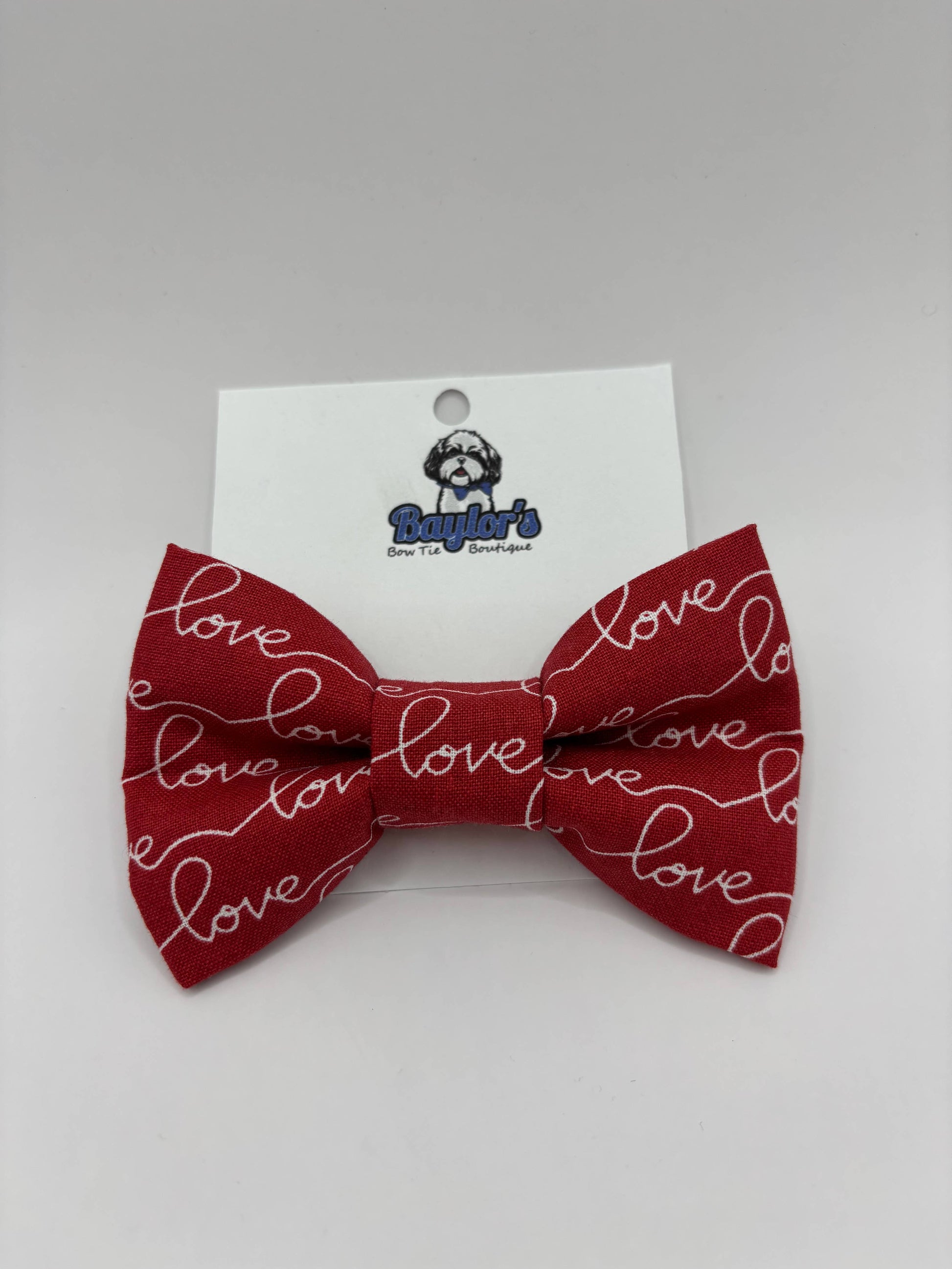 Valentine's Handmade pet bow tie with velcro backing to wrap around existing collar. Made from durable materials & reinforced to maintain shape. Machine washable.