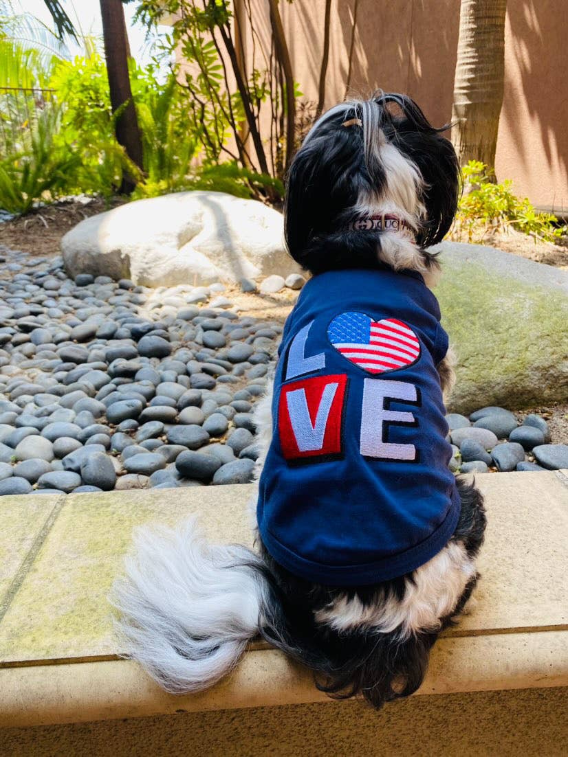 Show your pup’s patriotism with the Love USA Dog T-Shirt! This adorable and comfy pet outfit is perfect for small and large breeds, ideal for holidays. The Love USA Dog T-Shirt is perfect for patriotic pups who love to show their American spirit! Made from soft, breathable cotton, this comfortable and stylish pet outfit ensures all-day wear for small and large breeds. Whether for 4th of July, Memorial Day, or patriotic outings, this adorable dog tee is a must-have.
