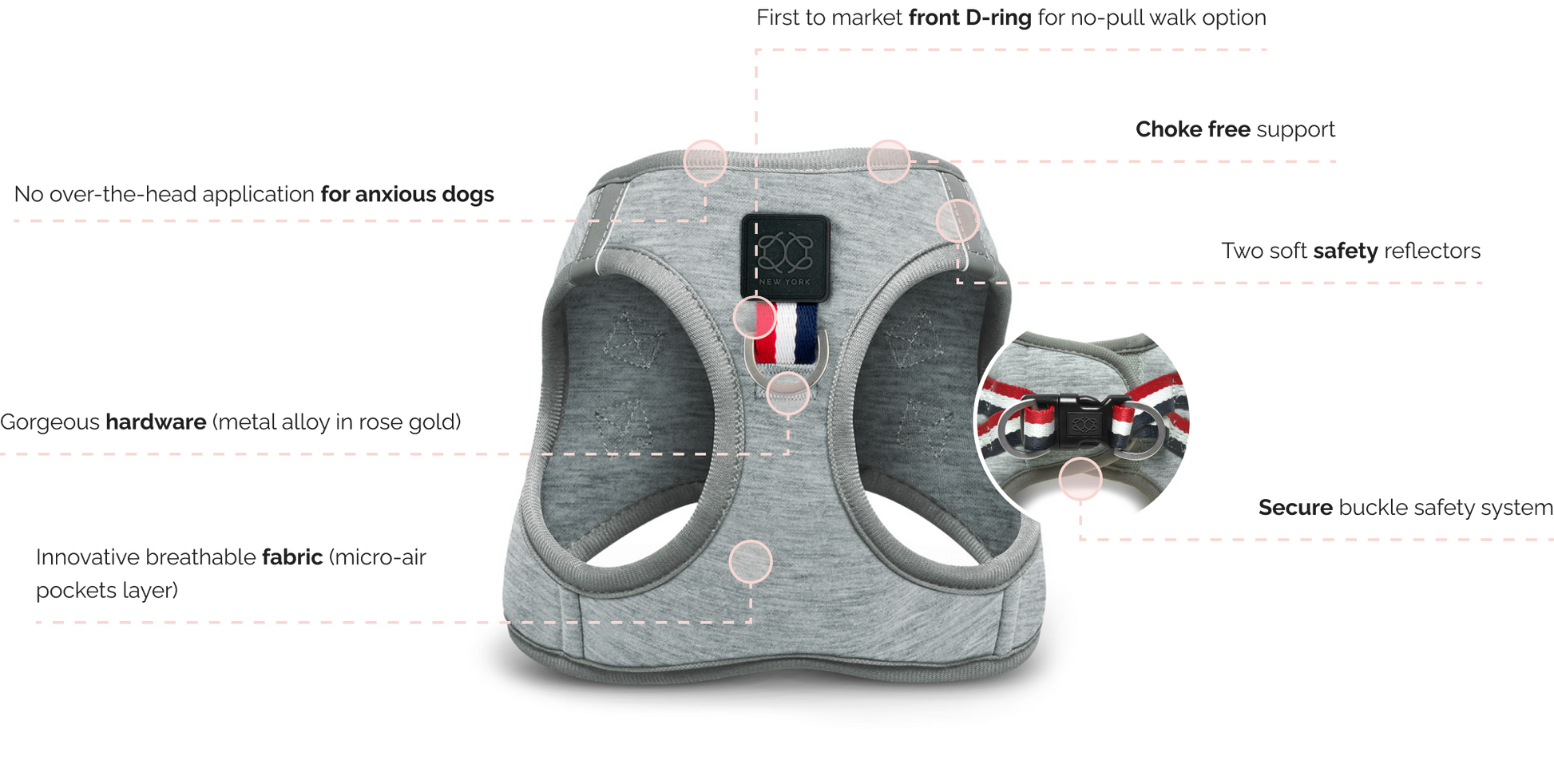 Luxe No-Pull Step-In Dog Harness - Champion Gray