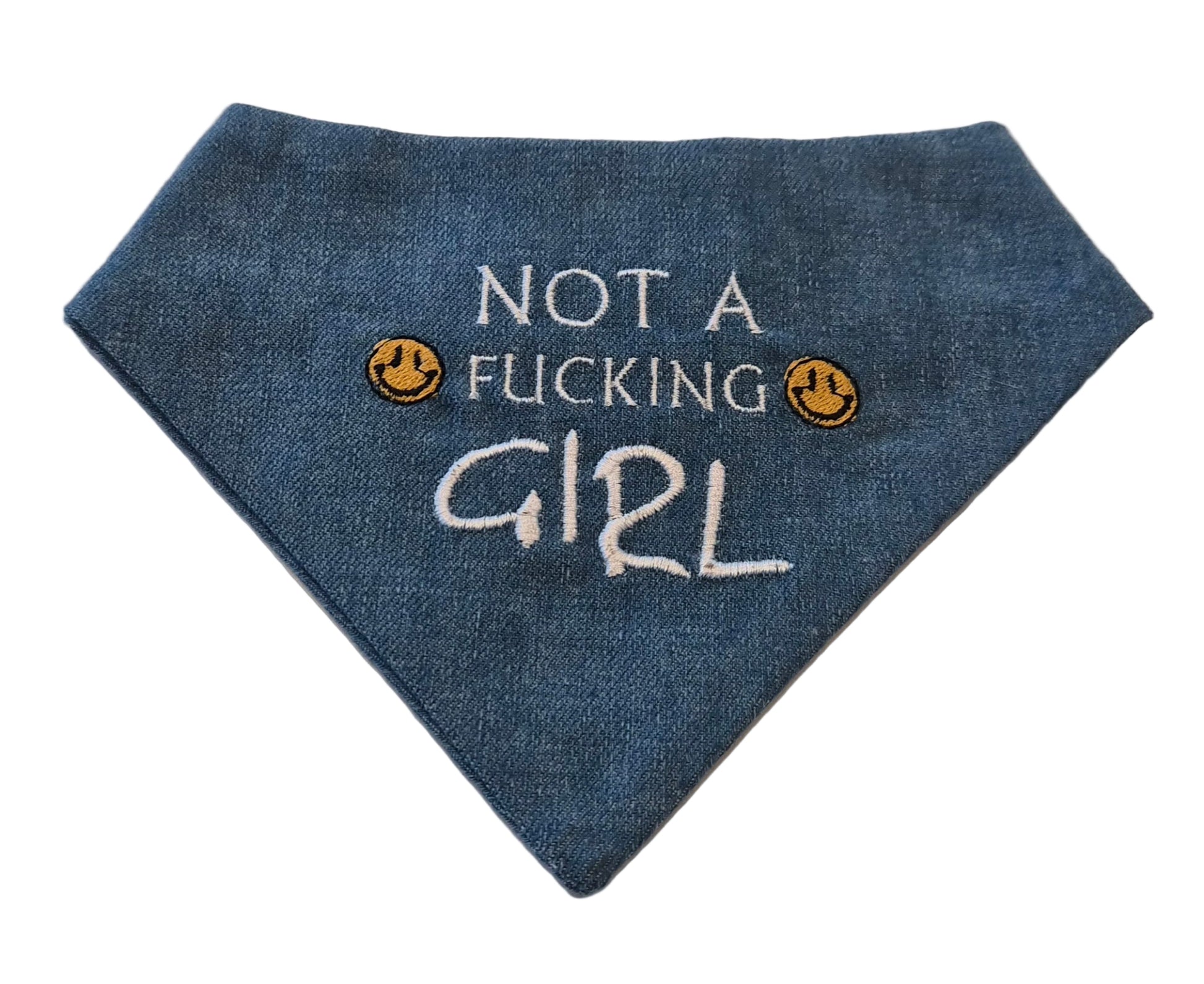 Cotton, curved neck pet bandana with one set of metal snaps. Size Chart in images. All measurements are approximate and will vary as each bandana is cut by hand.