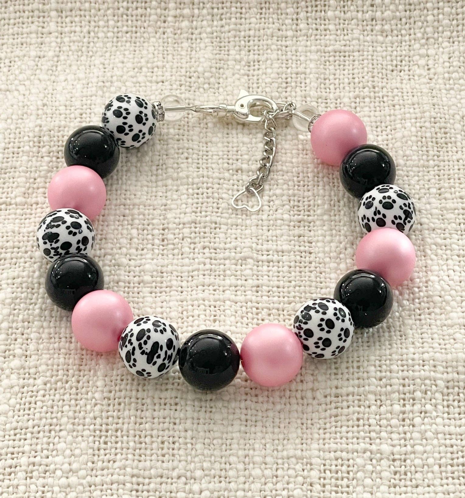 Accessorize your cute pup and their style with this Adorable Dog Necklaces. 💕 Features: 🐾 *Handmade*20mm Beads *Red, Black Web, and White Beads *Tiger Wire so they won't stretch *Large silver-toned clasp for convenience *Two-inch extender chain. To determine the size you need: Measure your pets neck, or remove their collar and measure it instead. Order a size larger for a comfortable fit, Or two inches if your pet is furry. This is not a toy, always supervise your dog while they are looking trendy and fabulous. Do not attach a leash directly to the necklace.