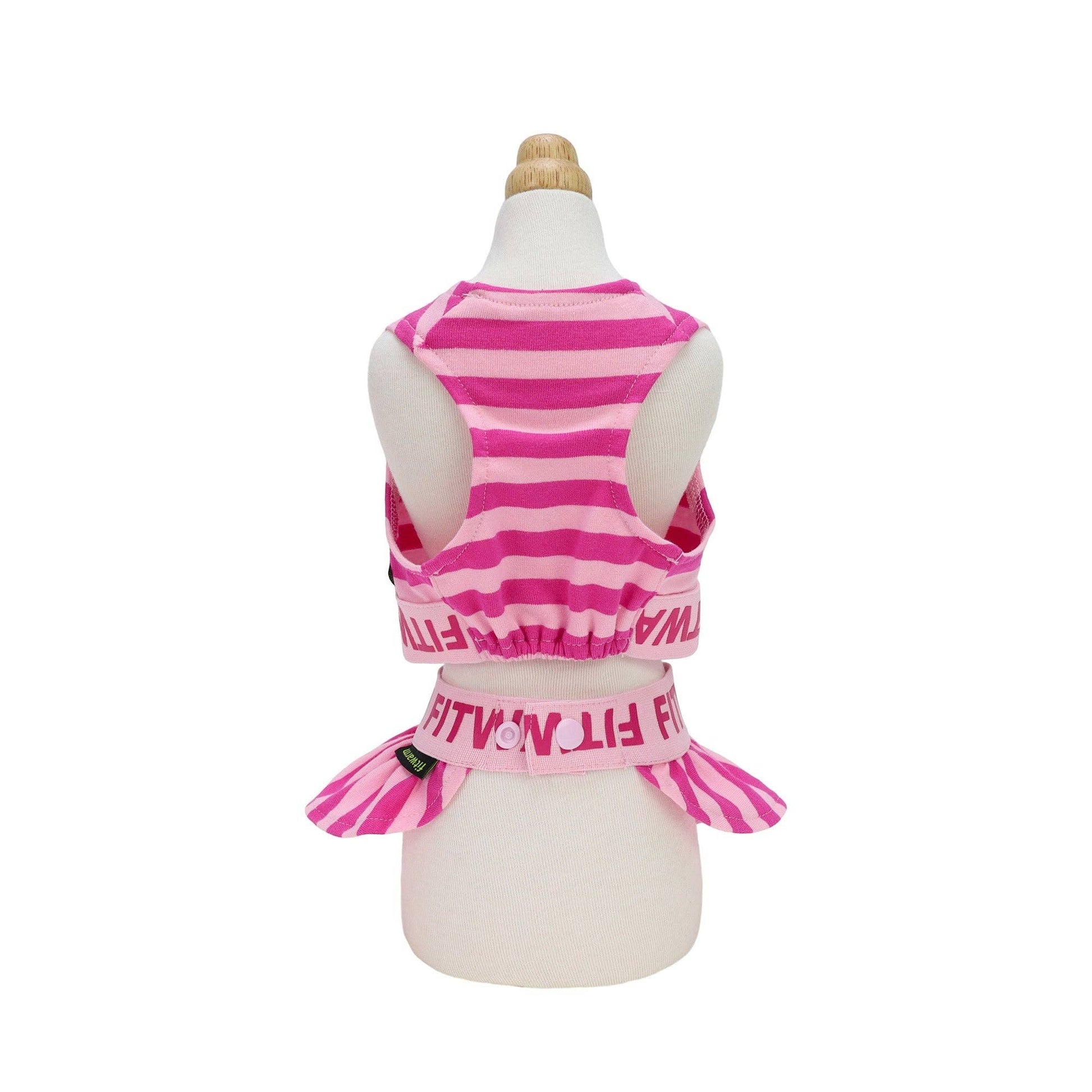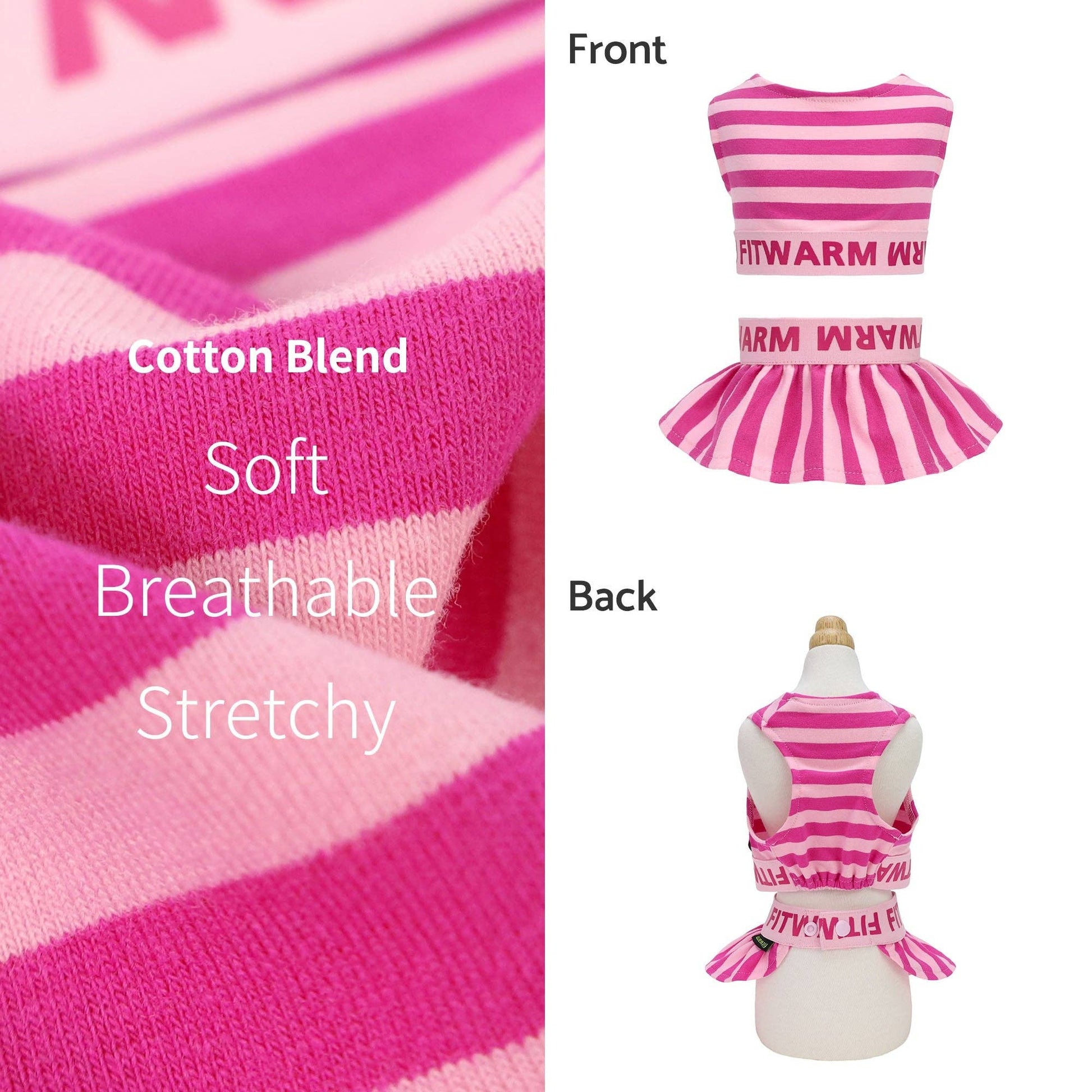 Dress your furry friend in the latest fashion with our athleisure dog dress crop top set. Featuring chic pinky stripes and a waistband adorned with the "Fitwarm" fonts, this ensemble is the epitome of style and comfort. Tailored specifically for all small girl dogs and cats, this dog dress ensures your pet stands out, making them the trendsetter in every gathering.