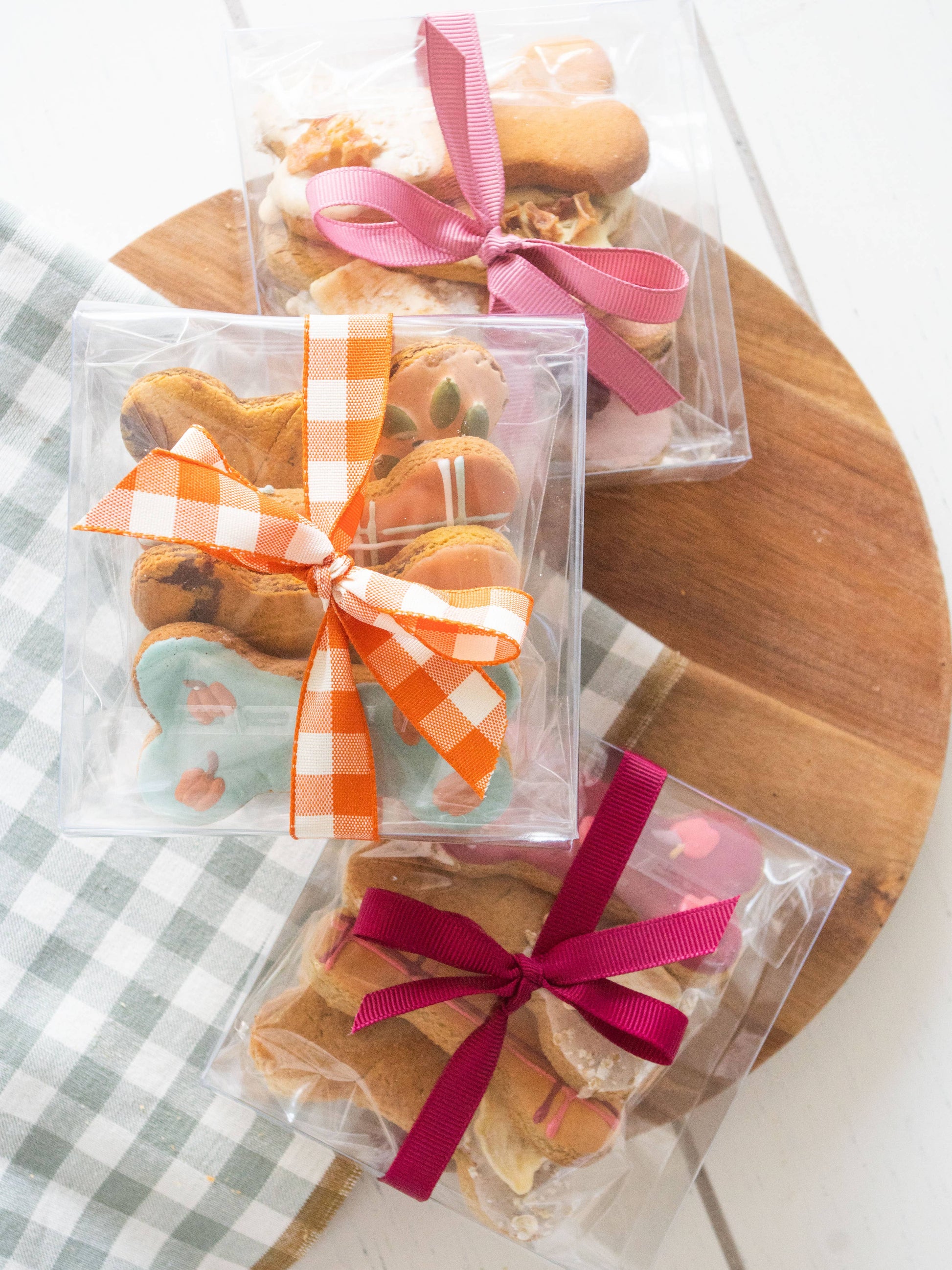 Pumpkin Patch Bone Biscuit Box, a delightful assortment of pumpkin-decorated bone biscuit treats for your furry friend. Made with love and the finest ingredients, our bone 4-pack box is the perfect way to treat your pup for pupkin season. Contains: 4, 3.5" bone biscuits Size: 4" plastic box Shelf-life: 2-4 months depending on humidity. We are dedicated to being environmentally friendly, all packaging used is biodegradable and can be thrown away or composted.