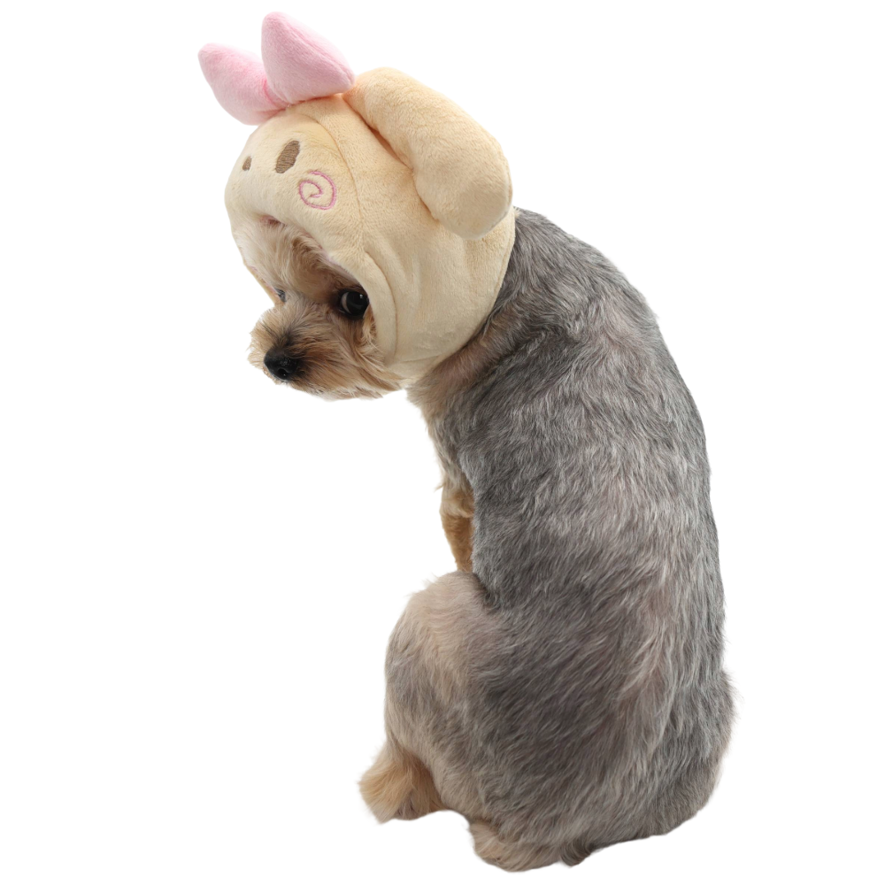Dress up your furry friend with this super cute and cozy puppy hat! Designed to keep your dog warm and stylish, this hat features a plush, beige material that is soft to the touch and gentle on your pet's skin. The hat is adorned with an adorable pink bow on top charming embroidered details that give it a playful and whimsical look, and Velcro strap closure and adjustment. This hat is perfect for dogs who love to stand out.